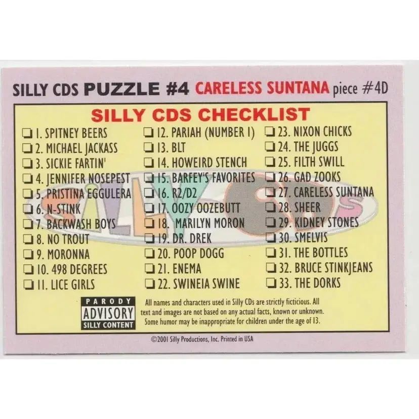 Careless Suntana Puzzle Card #4D 2001 Silly CDs trading card Carlos Santana Blues for Salvador parody