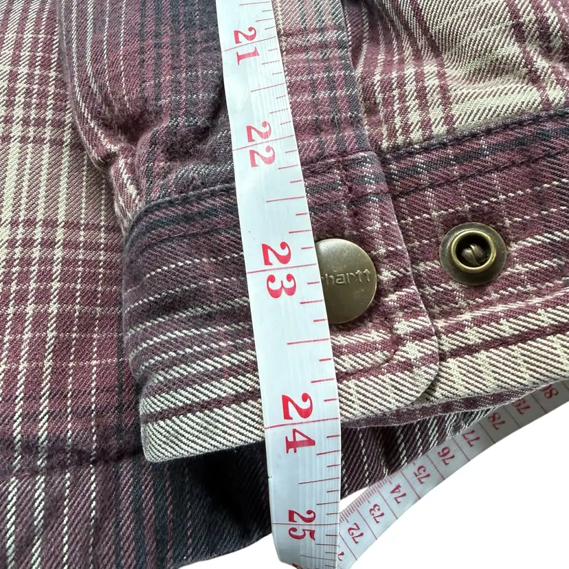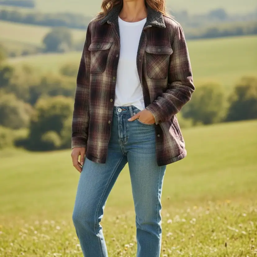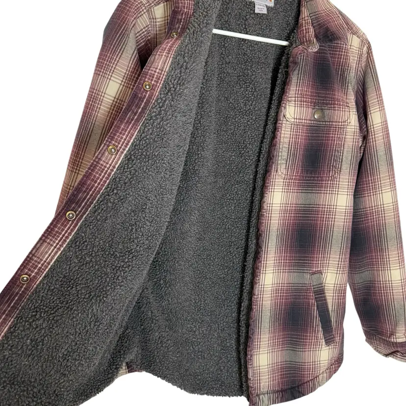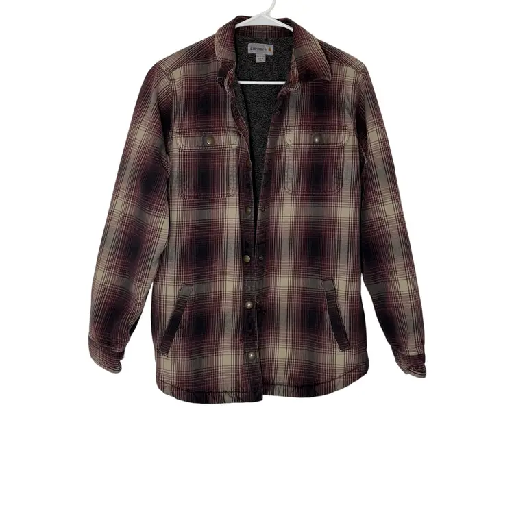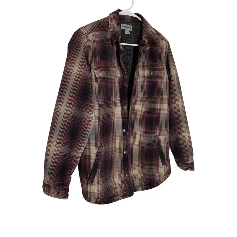 The Carhartt Women's Hubbard Sherpa Lined Flannel Plaid Jacket Shacket is a versatile and stylish outerwear piece suitable for casual and workwear occasions. Made from a durable cotton outer shell with a cozy polyester lining, this mid-length jacket features a classic plaid pattern and snap closure for a unique look. The shacket style offers a blend of practicality and fashion, making it perfect for outdoor activities like fishing, camping, or workwear settings. With features like lined comfort, pockets for storage, and a regular fit, this jacket is a must-have for any wardrobe, especially for those embracing a Western, country-inspired aesthetic.