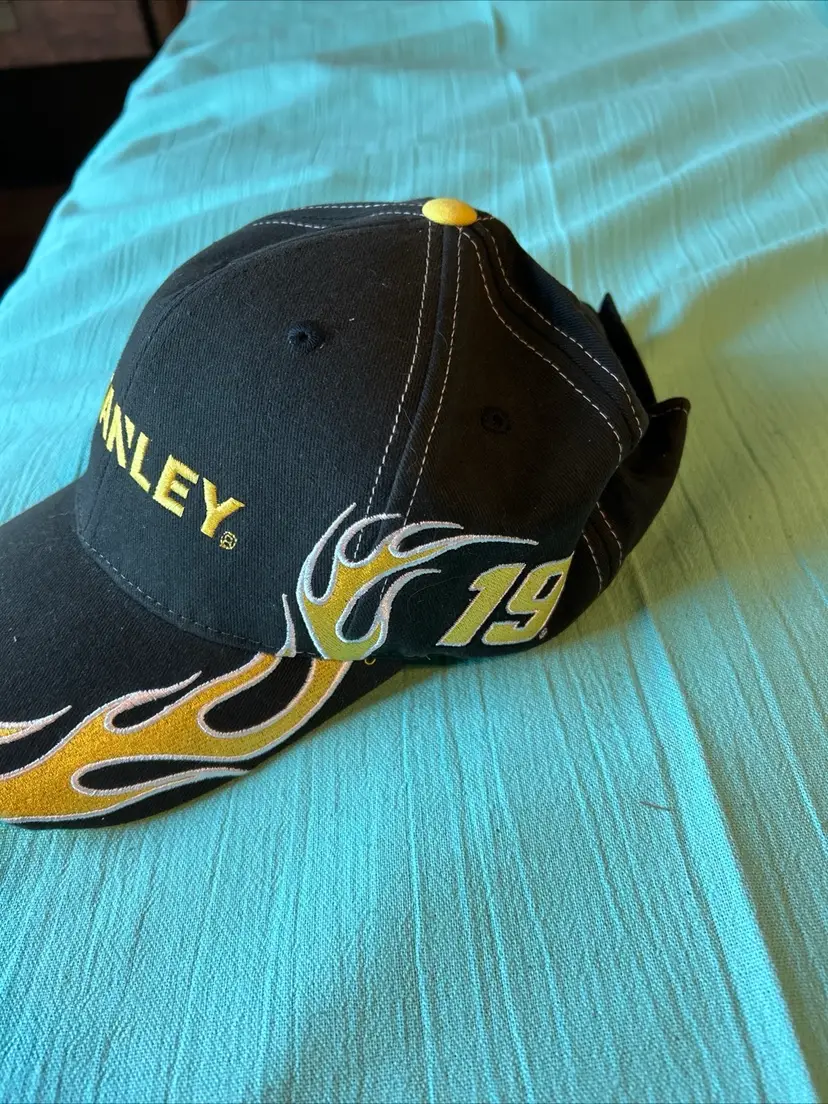 This listing is Officially Licensed Product. All Hats are shipped in a box to protect the integrity of their form. Carl Edwards #19 NASCAR Racing Cap STANLEY Joe Gibbs Racing Yellow Hat w/ FLAMES