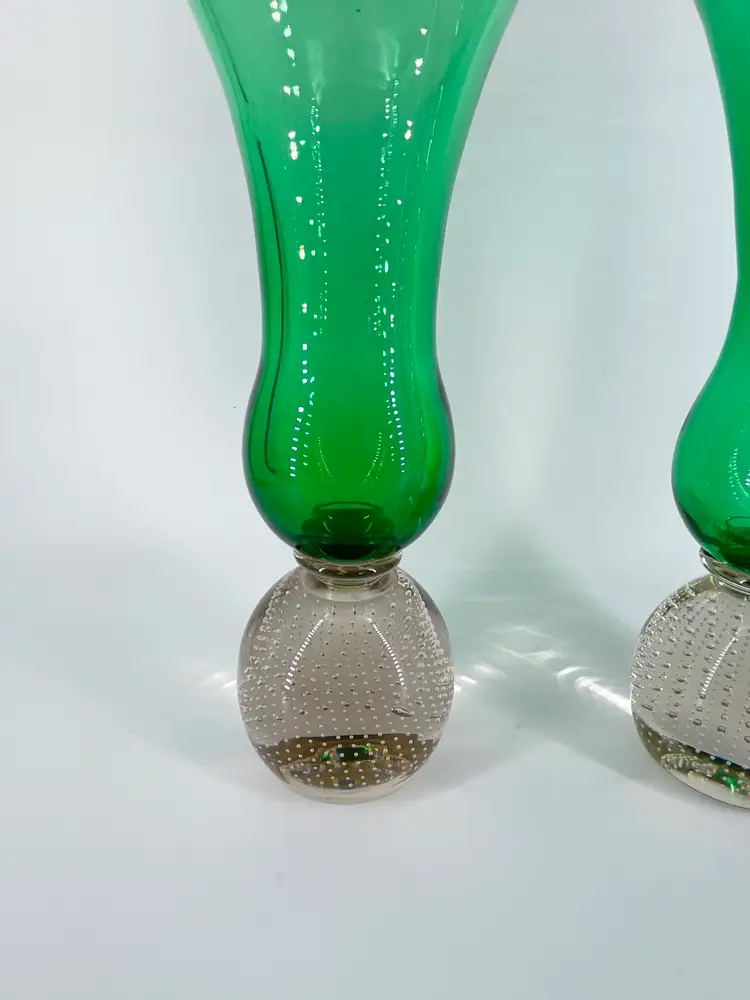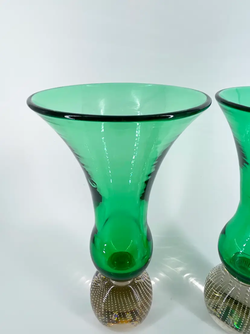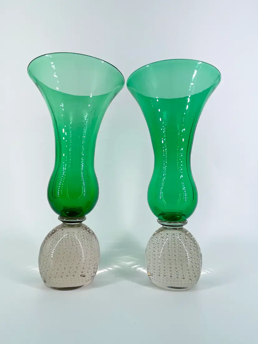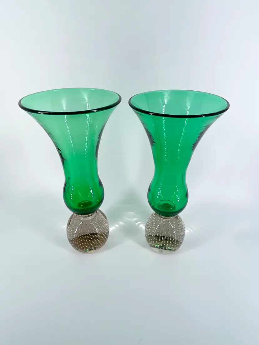 Based on research, Erickson rarely signed his art glass pieces. They are 12.5" tall, measure 6" in diameter at heir widest and weigh almost 5lbs each. They are in excellent condition. There are no cracks, breaks, chips or repairs. (See photos).
