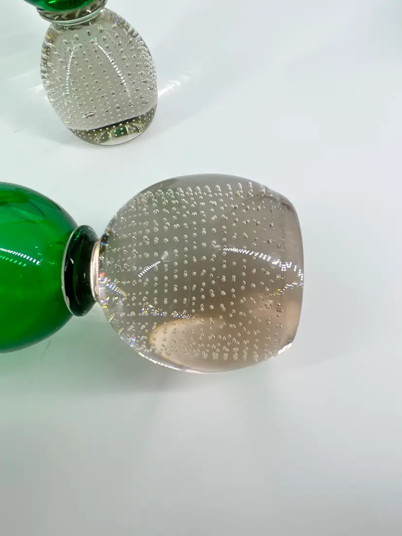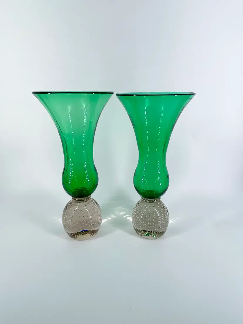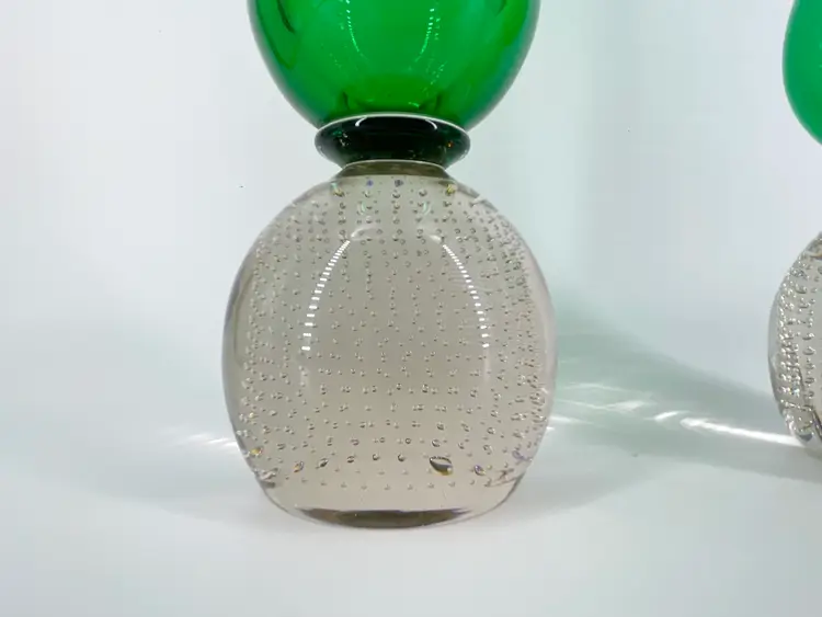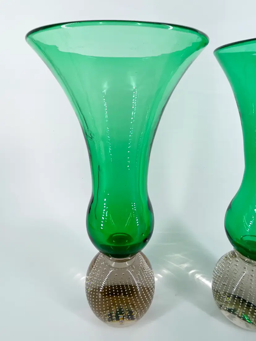Based on research, Erickson rarely signed his art glass pieces. They are 12.5" tall, measure 6" in diameter at heir widest and weigh almost 5lbs each. They are in excellent condition. There are no cracks, breaks, chips or repairs. (See photos).