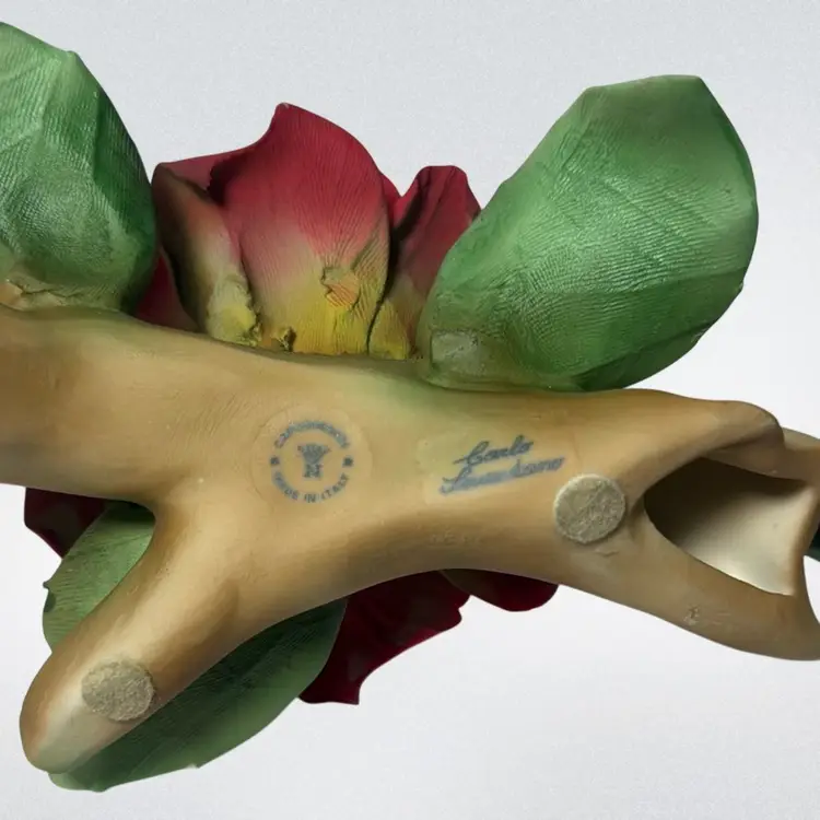 Vtg Capodimonte Italy Porcelain Red Rose Flower & Bud Signed Carlo Savastano. Signed. 7”