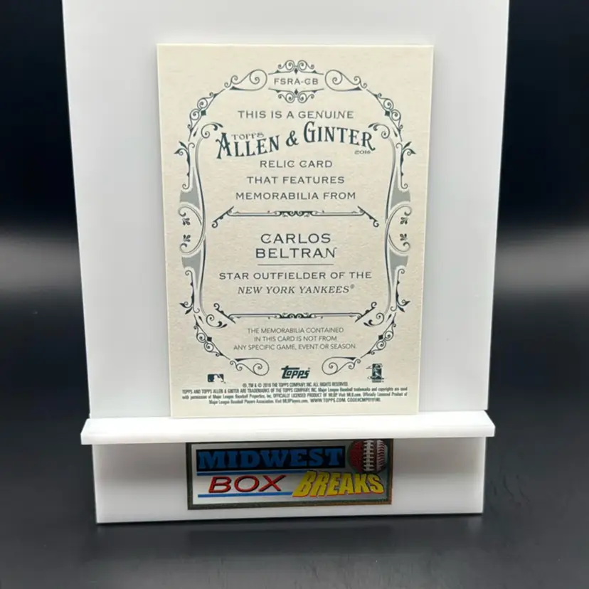 Carlos Beltran Relic Game Used 2016 Topps Allen & Ginter New York Yankees MBBCRD