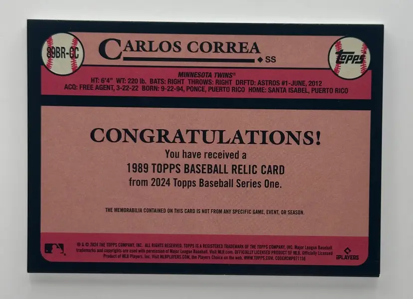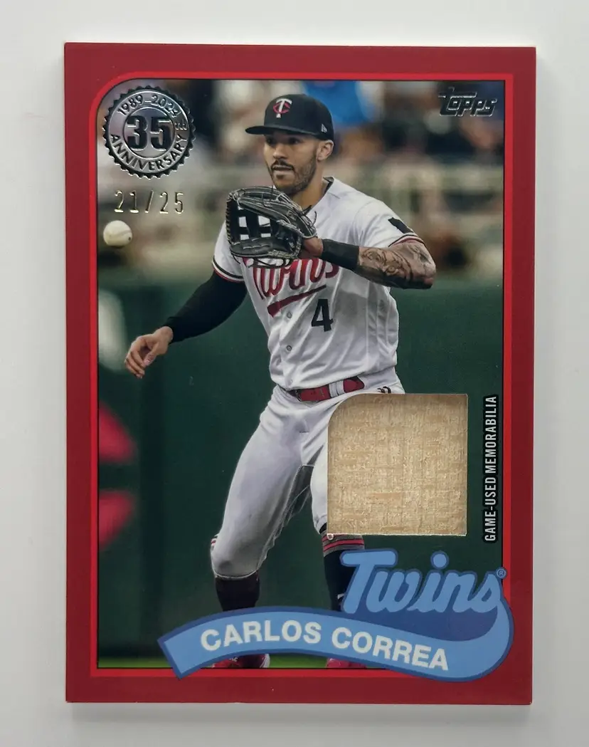Snag this limited edition Carlos Correa card from the Topps 35th Anniversary series, featuring game-used memorabilia. A must-have for Twins fans!