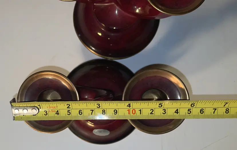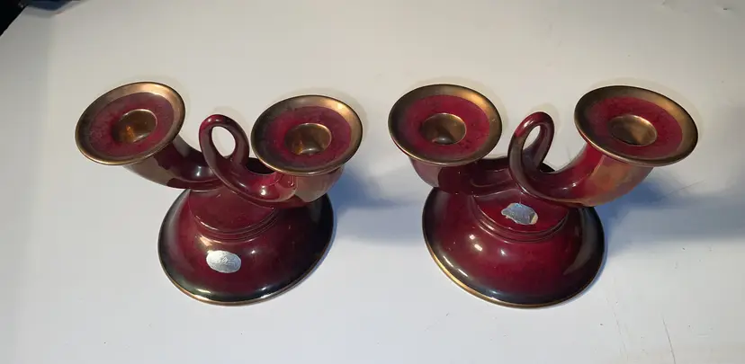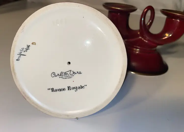 This Carlton Ware ‘Rouge Royale’ double candle holder is a stunning addition to any home decor. With its burgundy red and gold Art Deco design, it exudes vintage charm originality and elegance. Perfect for use with taper or dinner candles. Produced between 1925- 57 period it is signed on the base. A pre-loved vintage item in excellent condition with no signs of cracks or chips visible.