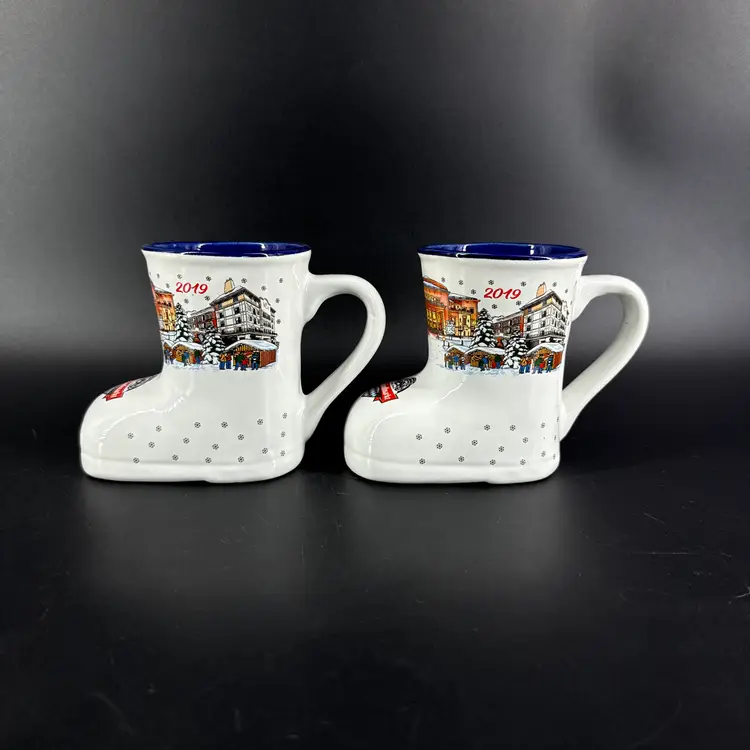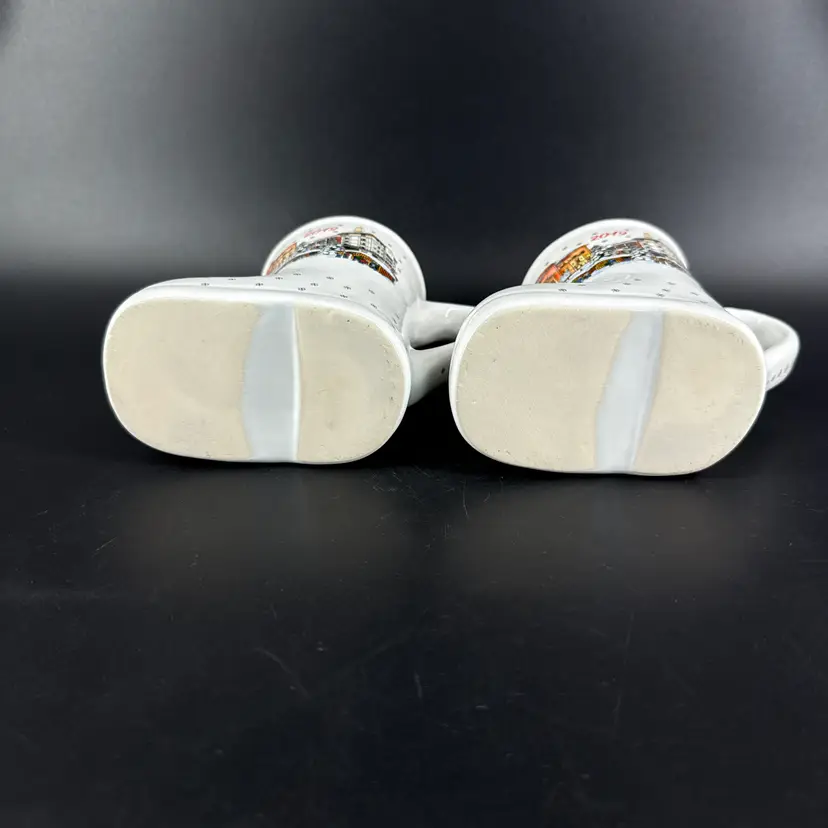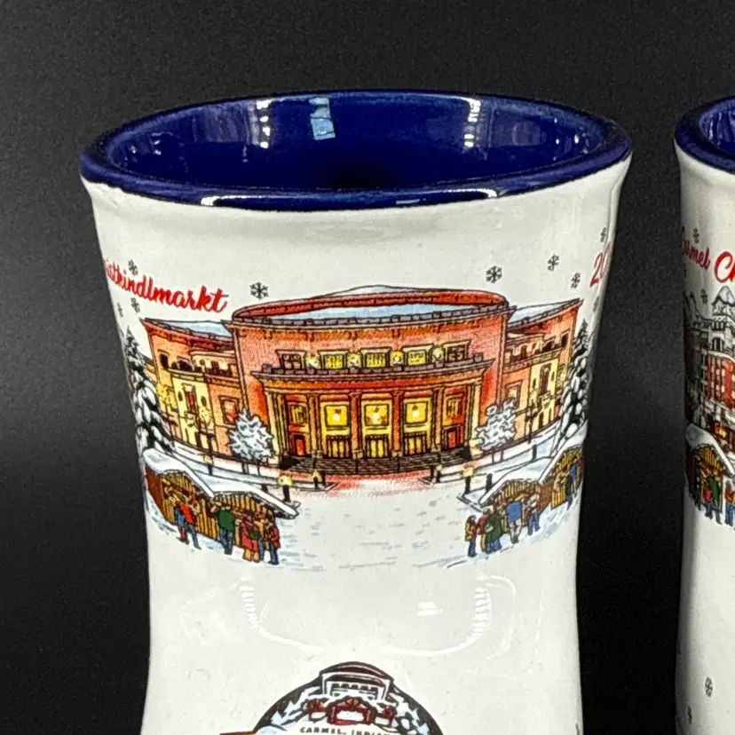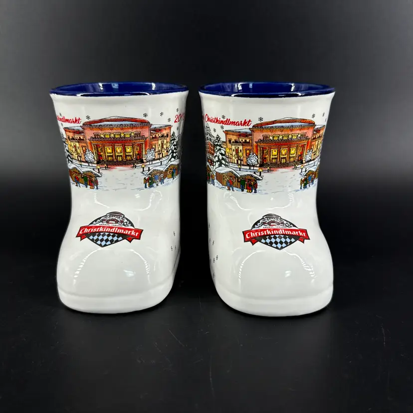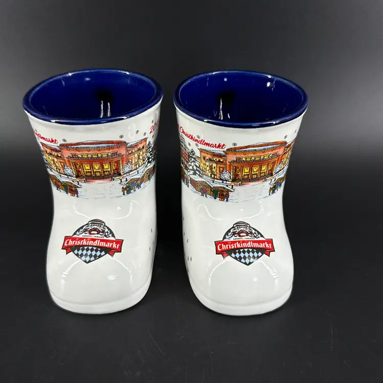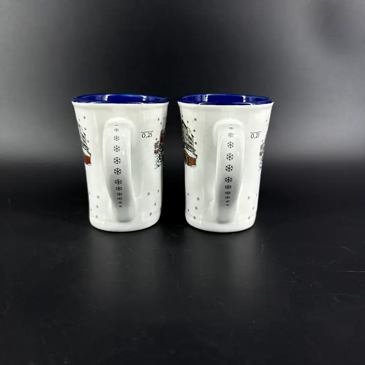 They are 4" tall, measure 6"x3" and have a 10oz capacity. They are in excellent condition. There are no cracks, breaks, chips, repairs or utensil marks. (See photos).