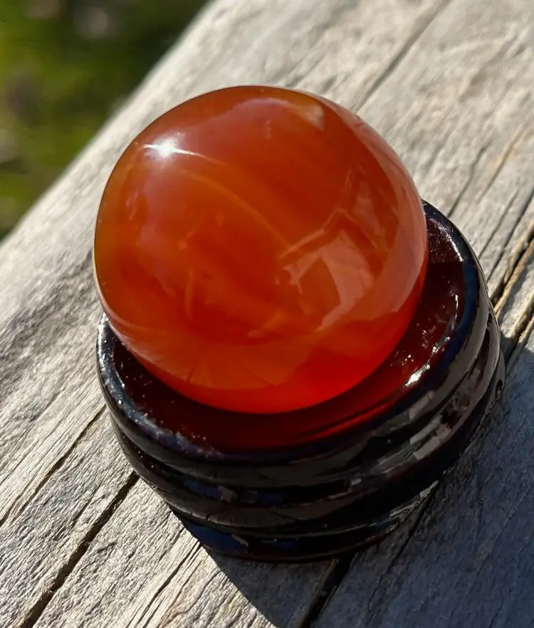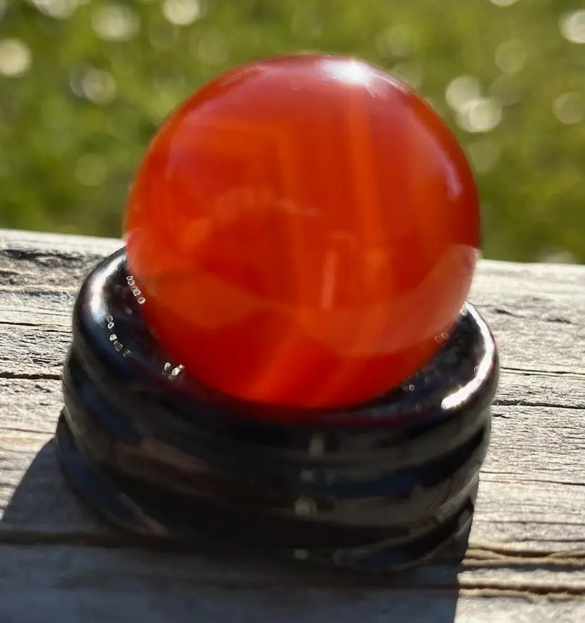 A pretty Carnelian Sphere. 30 grams. 2.5 mm. A clear cone shape stand is included.