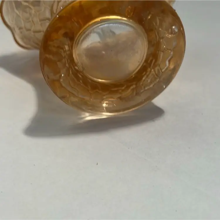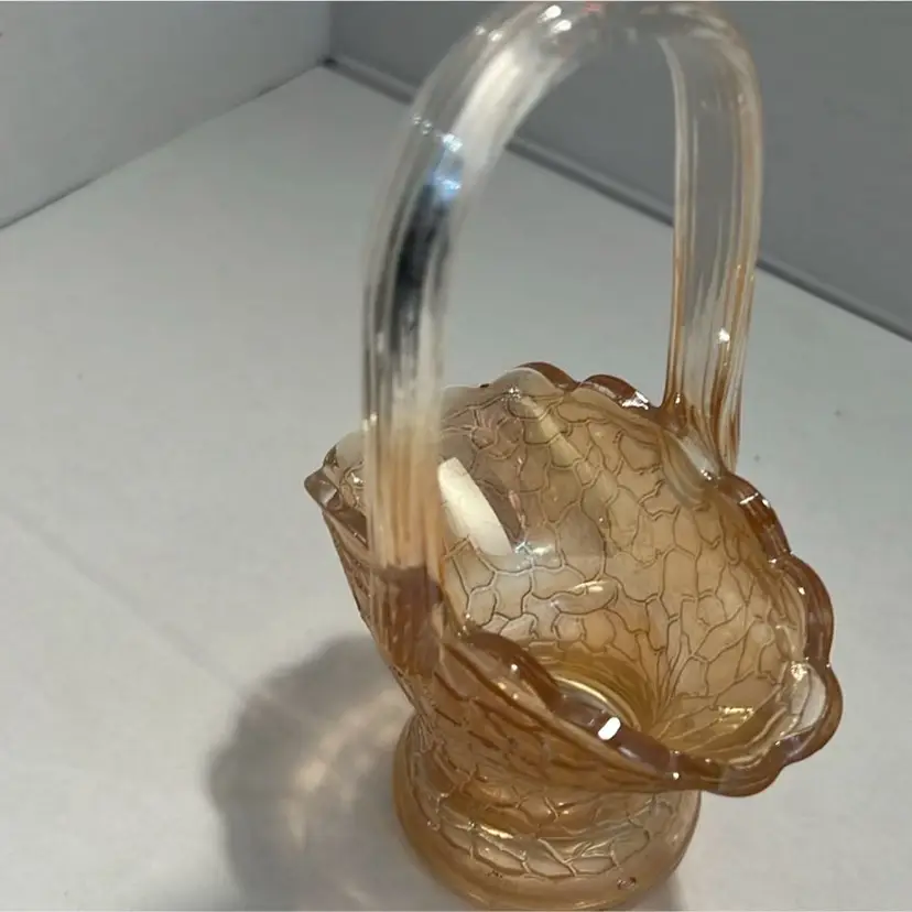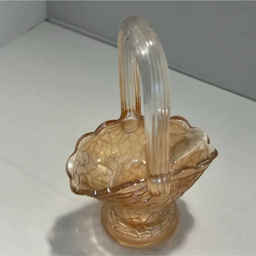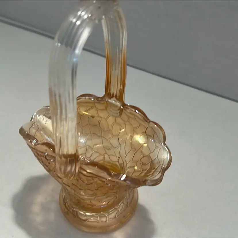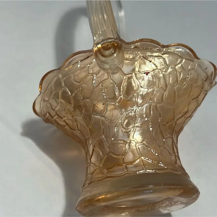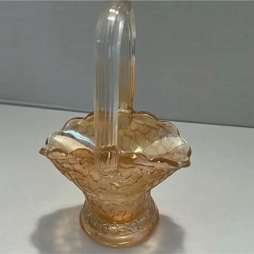 Carnival glass basket, waffle pattern, 6 inches tall 3 1/2 inches wide