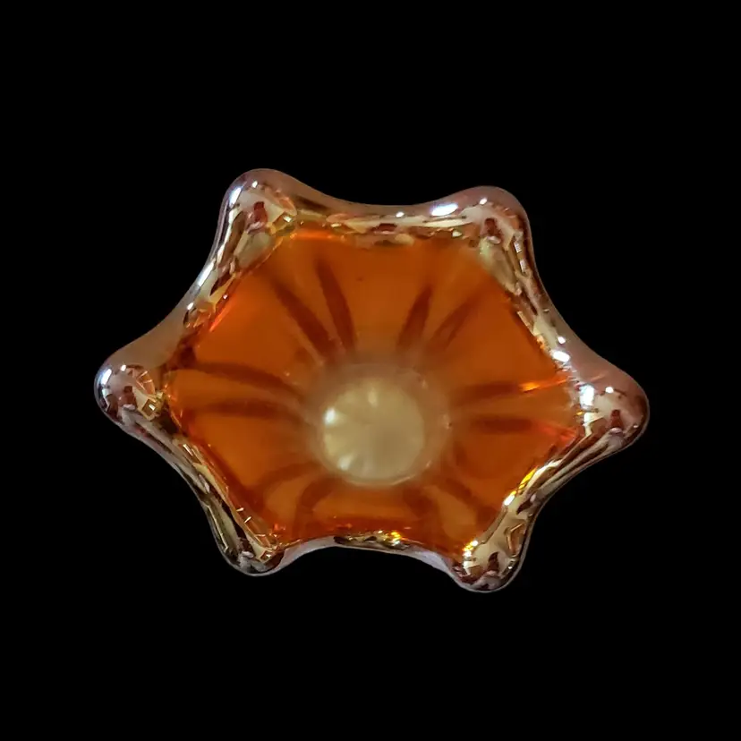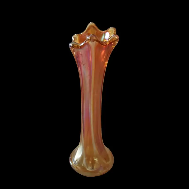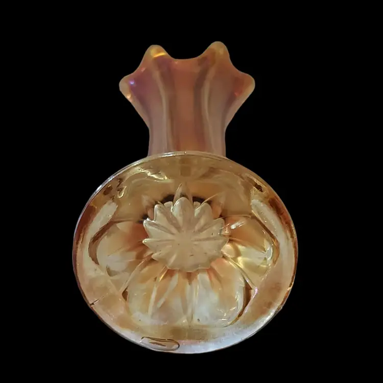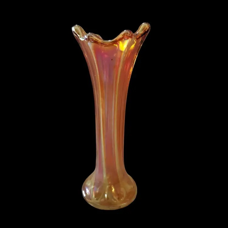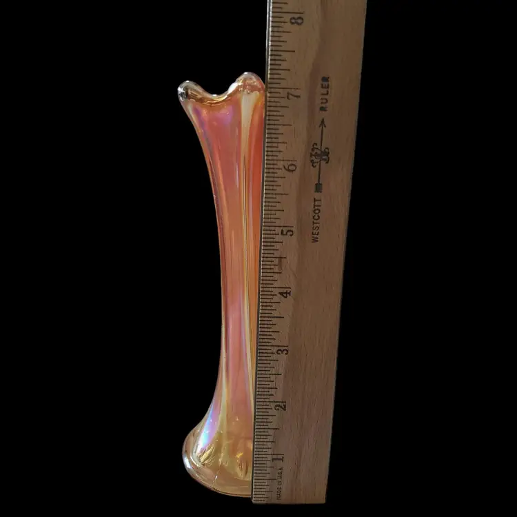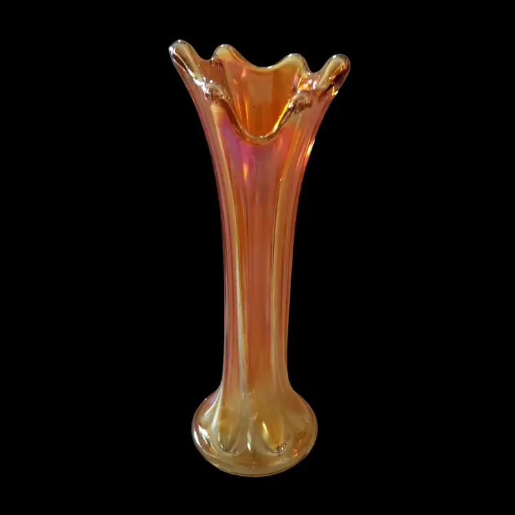 Carnival Glass Vase Marigold Morning Glory Iridescence 7¼" Tall approximately Unbranded Vintage. Used condition with water stains, manufacturer flaws including bubbles and dirt within the glass. Please view all the photos and read the entire item description and please ask any questions prior to purchase when possible.
