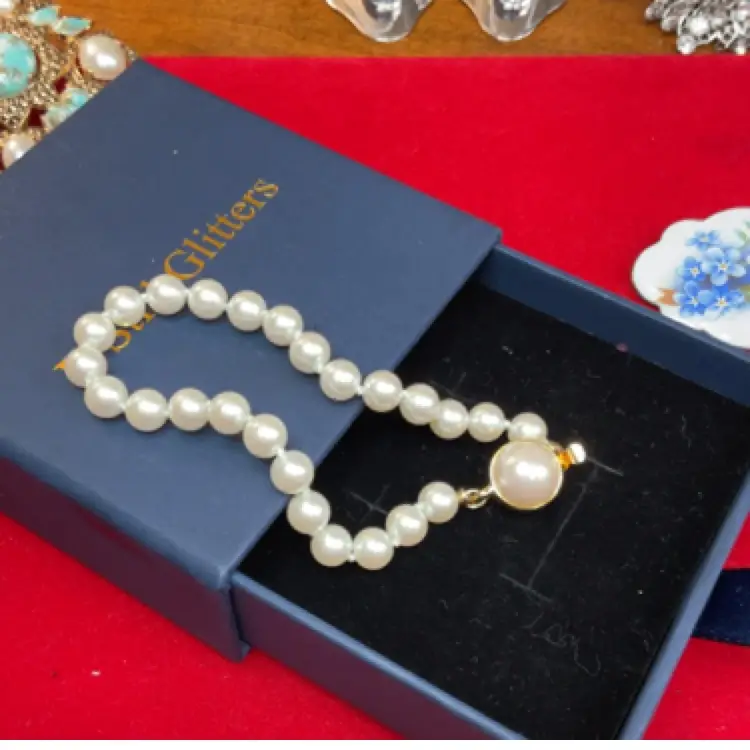 Welcome to our shop of mostly pre-owned and sometimes new jewelry treasures, trinket boxes, compacts - sometimes art and glass. Please follow us so you're in the know when we go live or add new items. Our curated beauties include a large selection of vintage pieces as well as many contemporary items. We also craft and design our own fun costume (and some fine) jewelry pieces, bookmarks, digital art and more in our small studio.