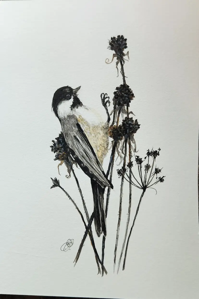 Carolina Chickadee Original watercolor painting Signed By The Artist 5x7