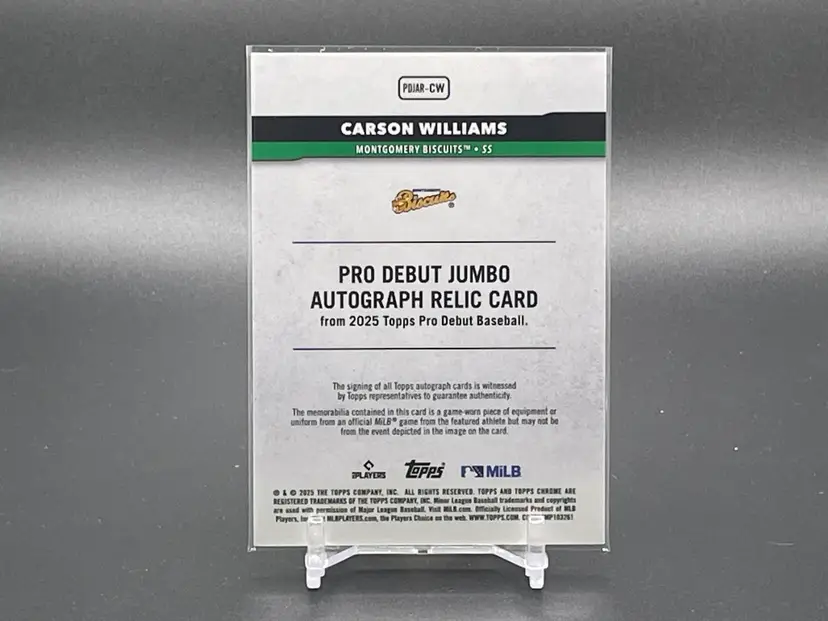 Carson Williams 2025 Pro Debut Blue Patch Auto /150 - Tampa Bay Rays