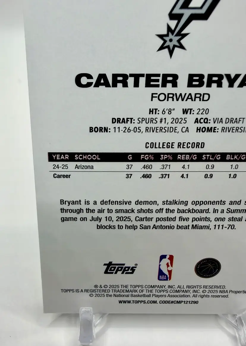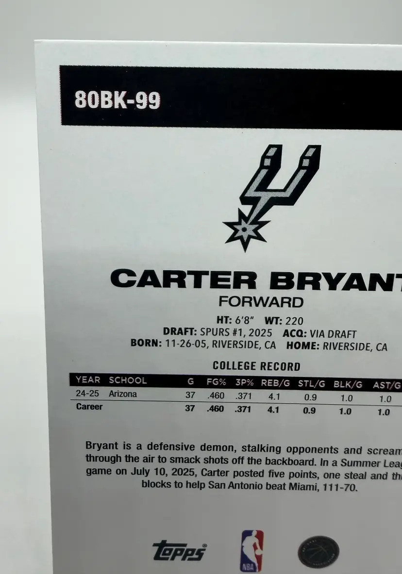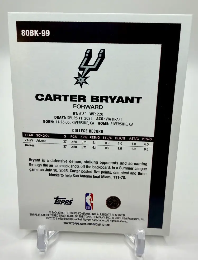 2055 Topps Flagship Basketball trading card featuring NBA player Carter Bryant. This particular card commemorates the 45th anniversary of the Topps set and is a foil parallel variety.