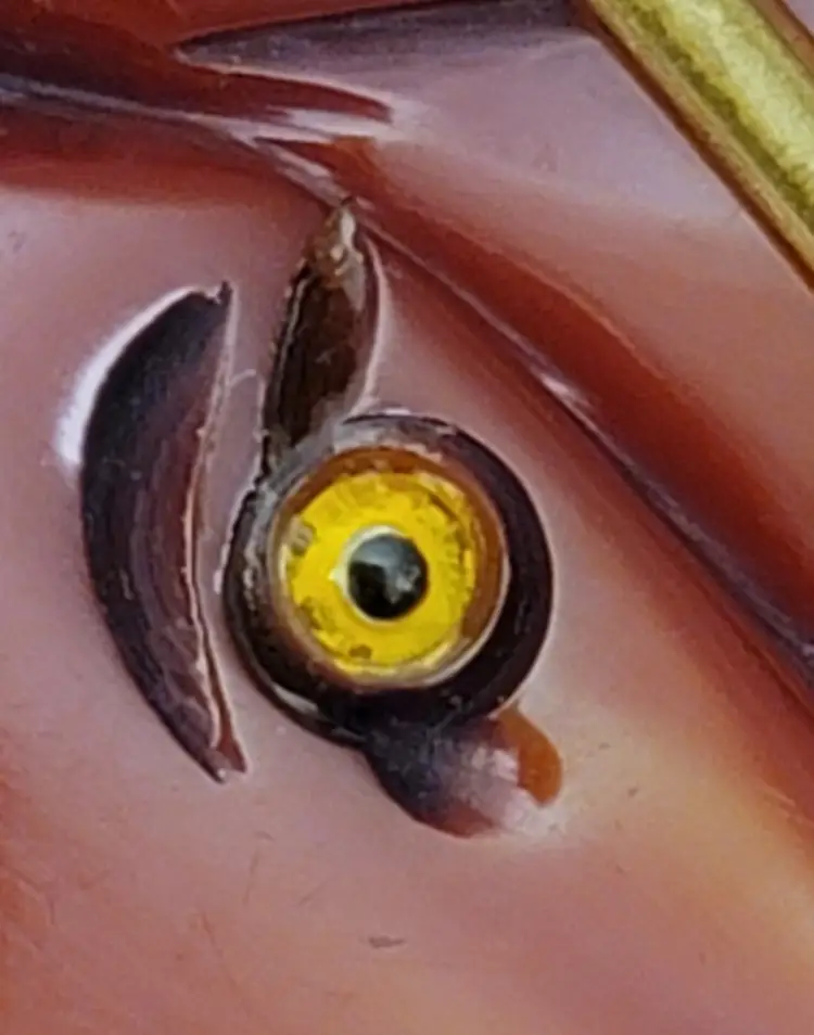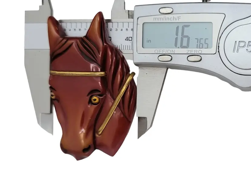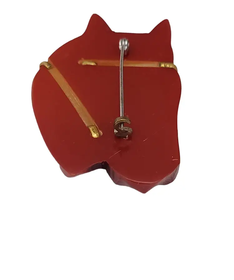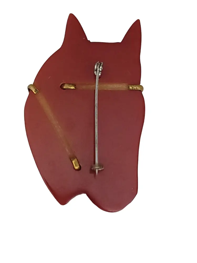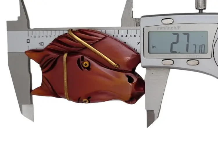 Carved Chestnut Bakelite Horse Glass Eyes Pin Brooch