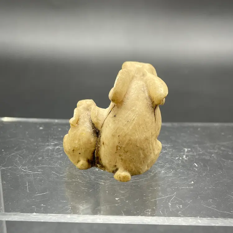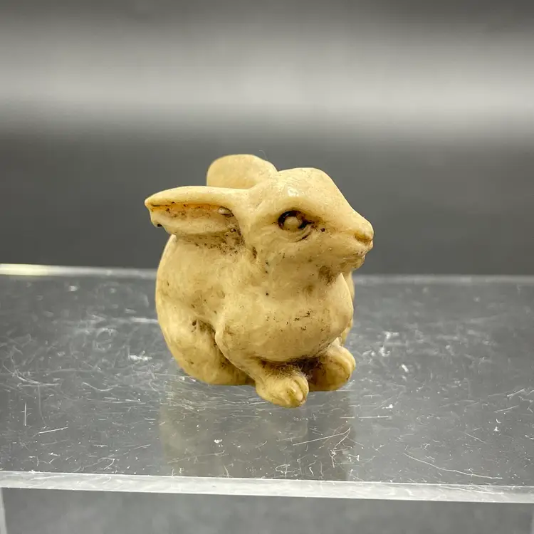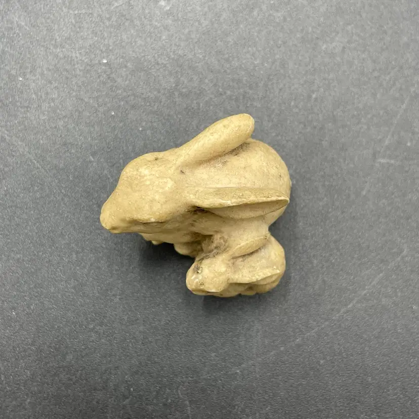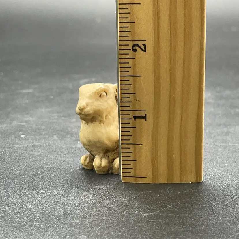 This is a miniature carved resin mom and baby rabbit figurine. Measures approximately 1.5" tall. No chips or cracks.
