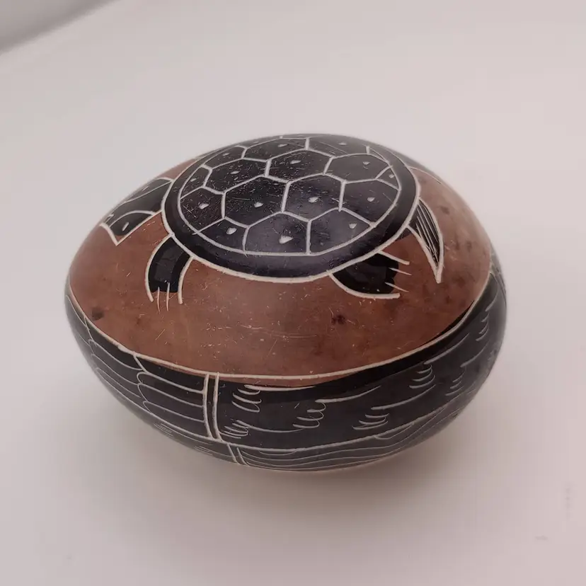 This is a great little carved soapstone egg with a turtle on it. It's in excellent condition with no noted damage.