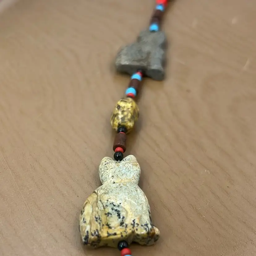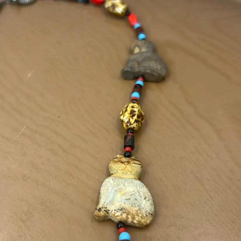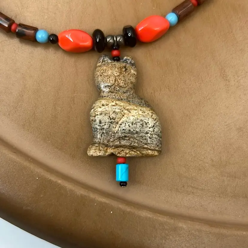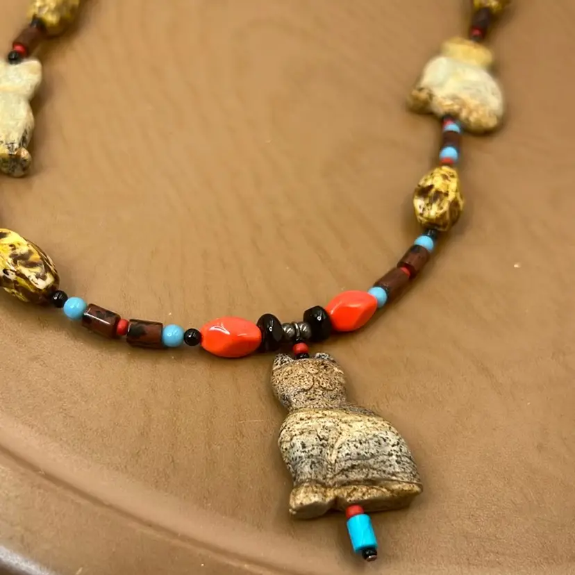 Five fabulous cats with orange, blue brown glass beads. Well made, wire strung. Amazing! No damage.