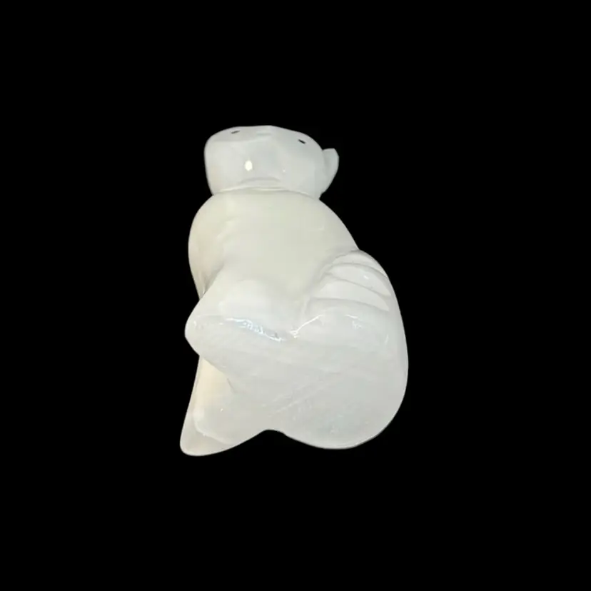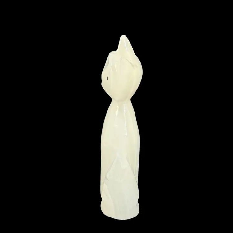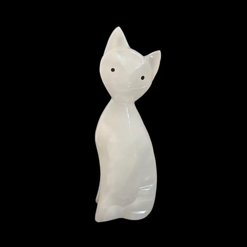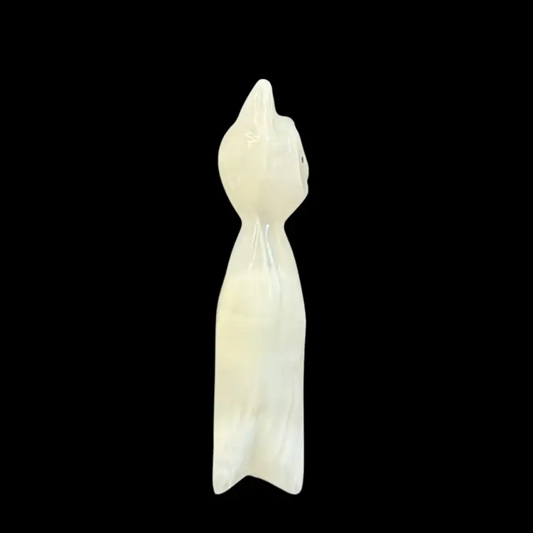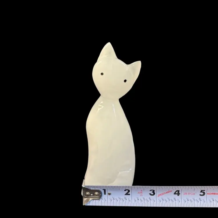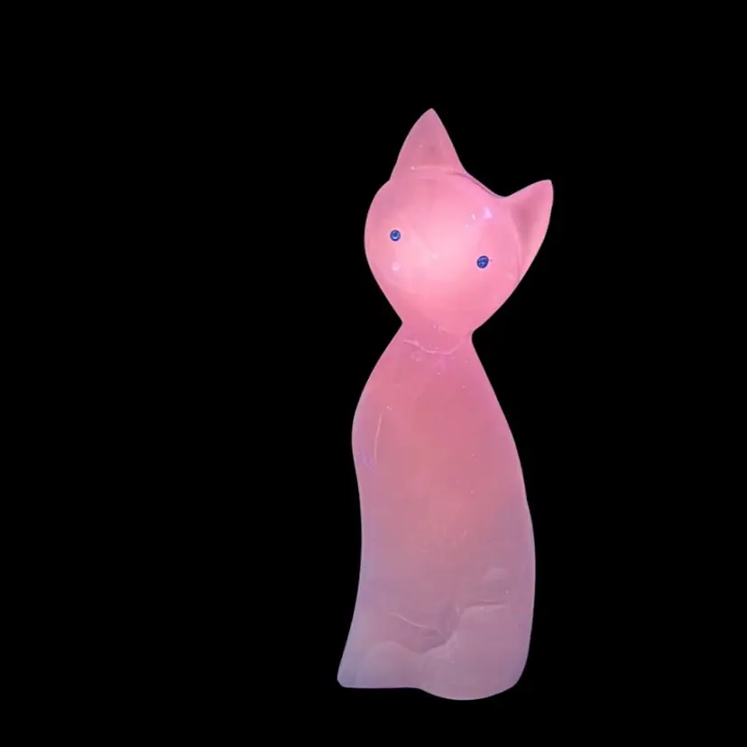 Carved white stone sitting cat. Glows with a 365 UV Light.