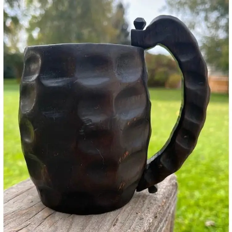 I am told that these mugs were sold as tourist souvenirs. Approximately 5 1/2" Tall and 5 1/2"Wide including the handle. Very light scratching in one spot.