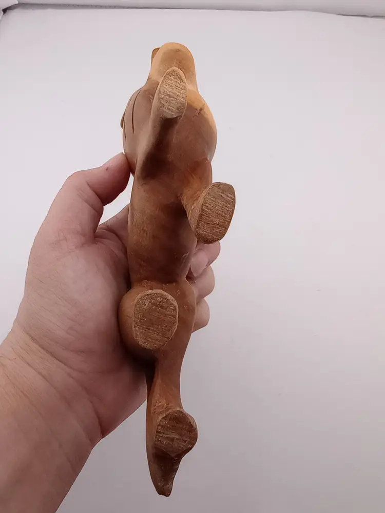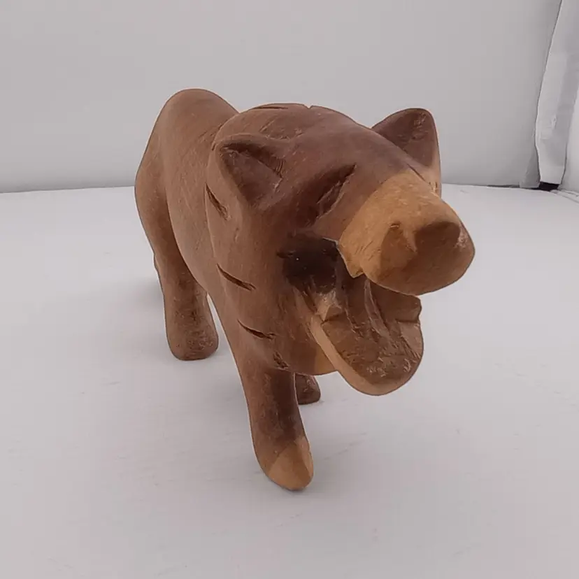 He's a cute...I mean fierce...little lion carved from wood. He's in excellent condition with no noted flaws.