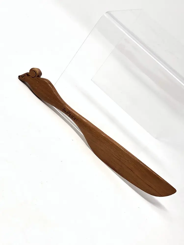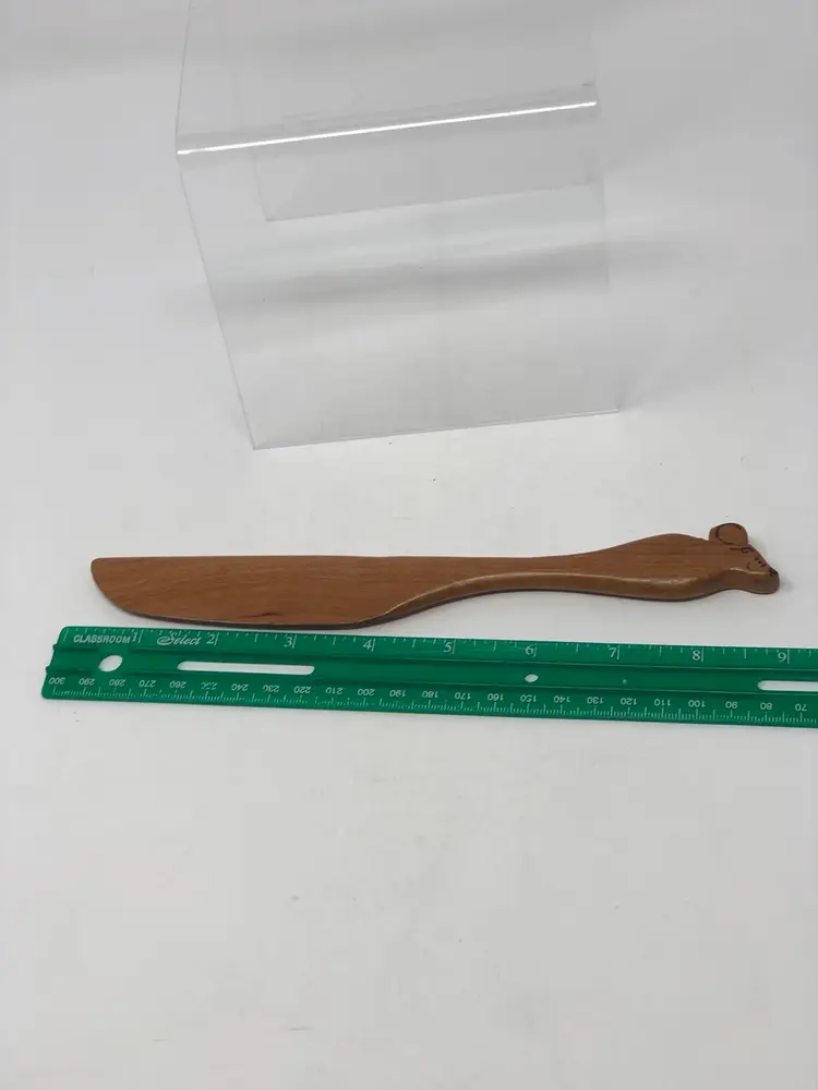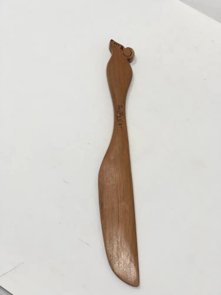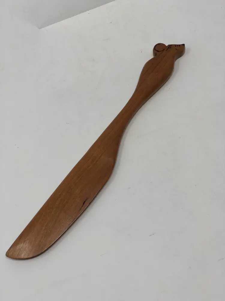 Hand carved wooden mouse cheese knife. Artist signed Guffey 21. 9" long