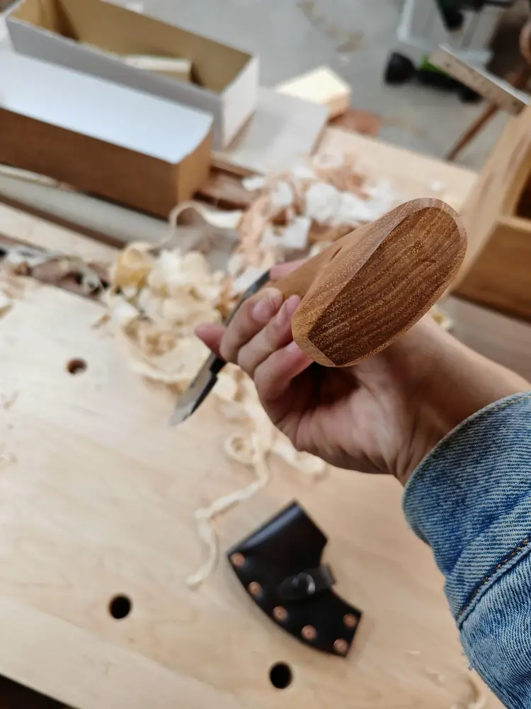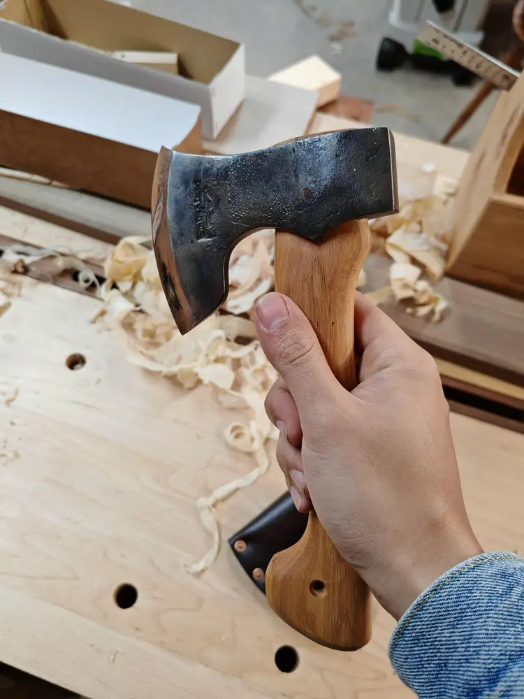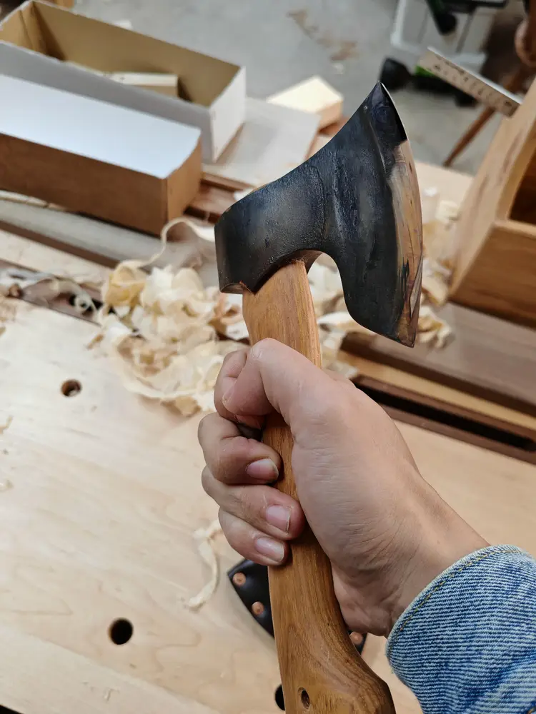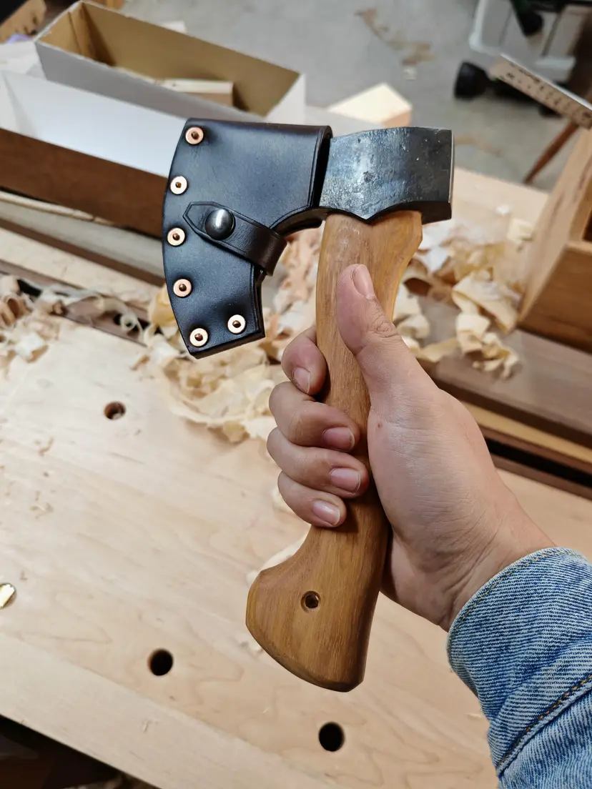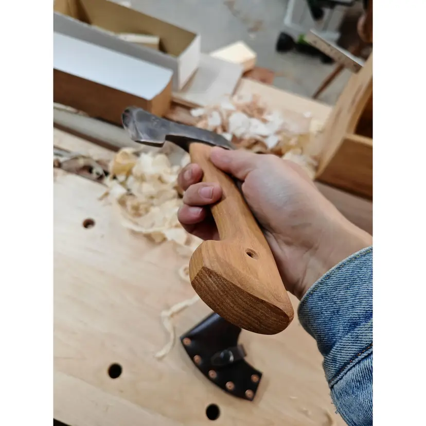 Classic carving hatchet with leather sheath. Made by a friend of mine. Finest edge retention, razor sharp.