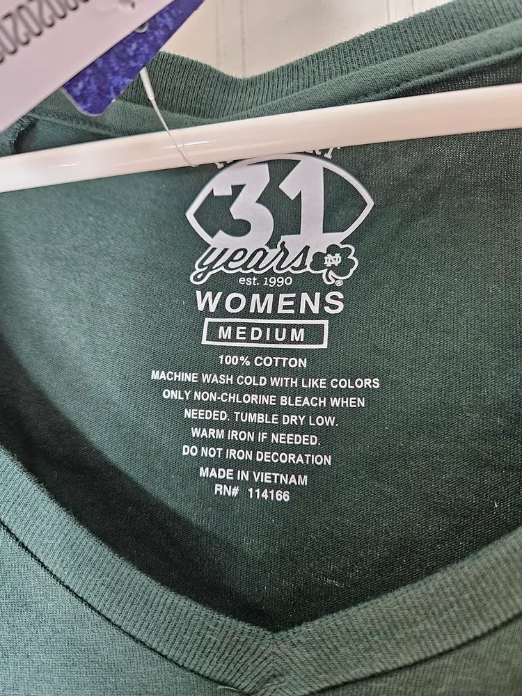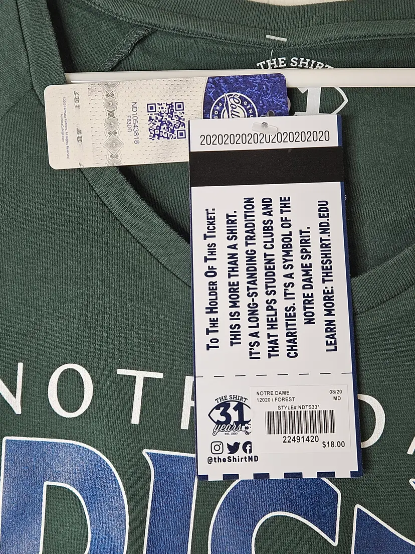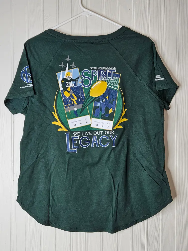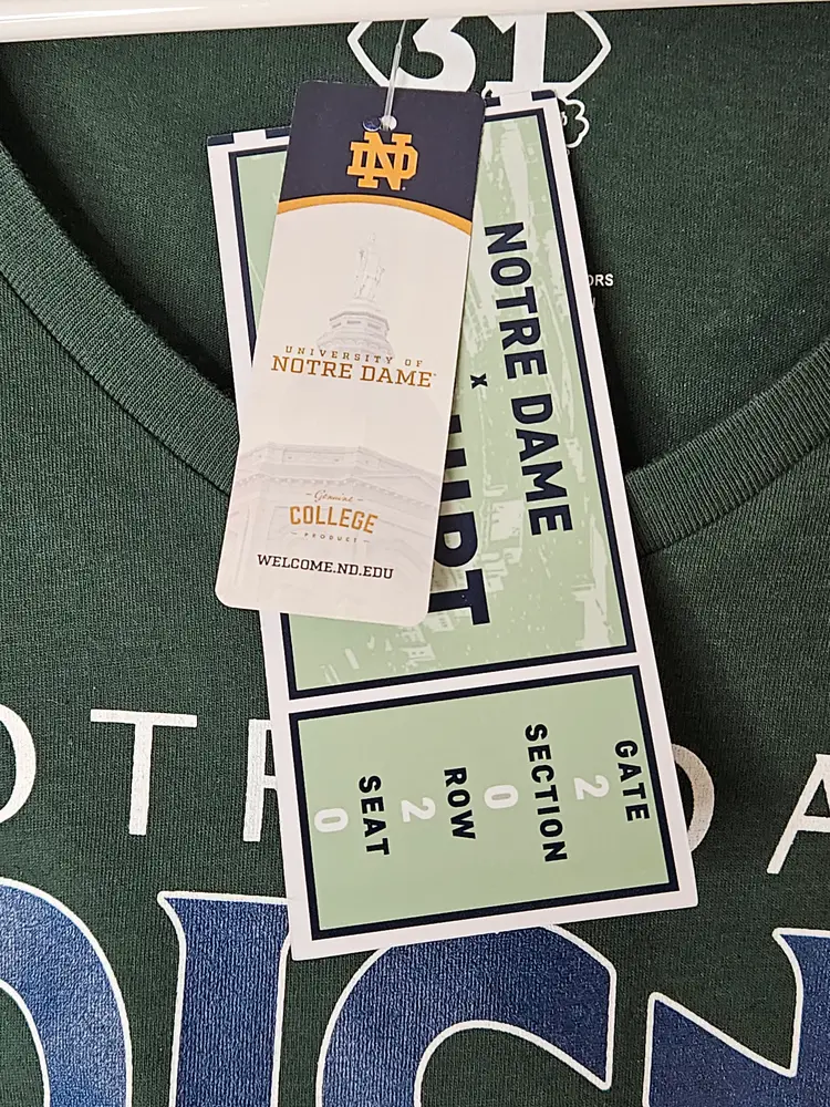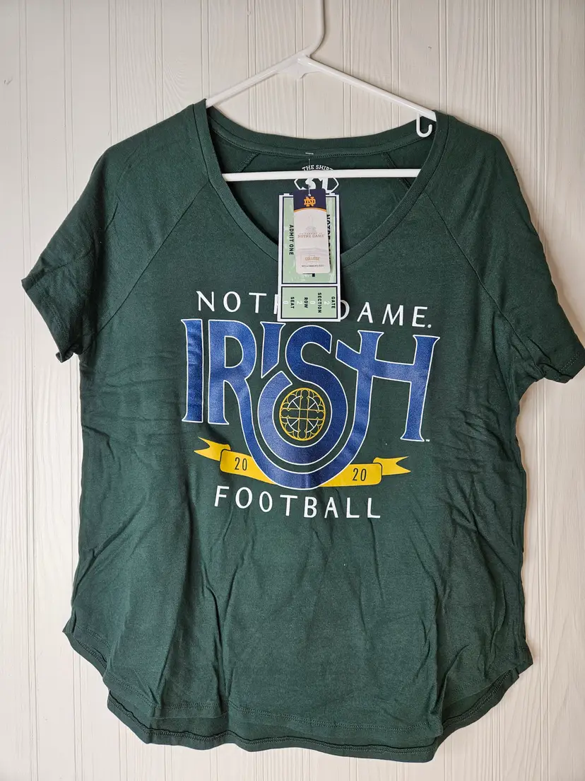 You are buying a case of 24 new with tags Official Notre Dame Football 2020 The Shirt Green Graphic T-Shirts. They are all short sleeve and a women's size medium. Original retail on them was $18 each and they are the exact t-shirts sold on campus and during the Football Games.
