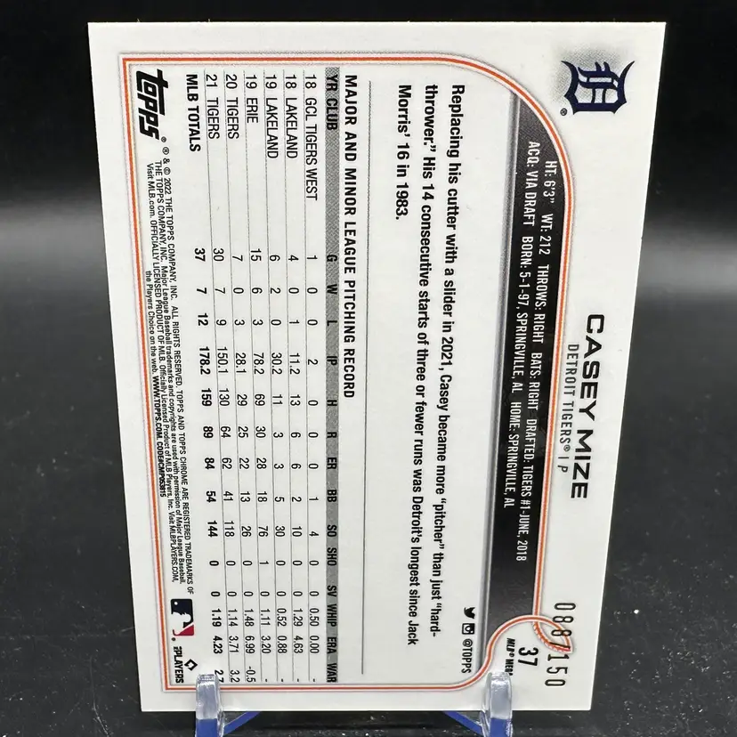Casey Mize Logofractor Blue Refractor /150 2022 Topps Chrome Detroit Tigers Card is in good condition and please refer to pictures for full view from separate angles.