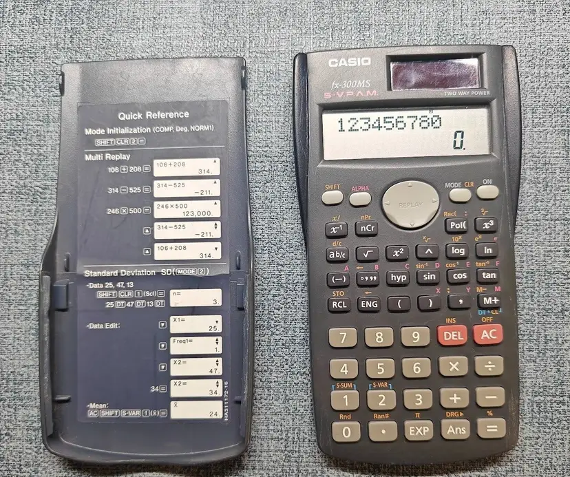 The Casio FX-300MS Calculator is a handheld scientific calculator powered by solar energy. It comes with a case and is in excellent used condition. It is suitable for use in office environments and other business and industrial settings.