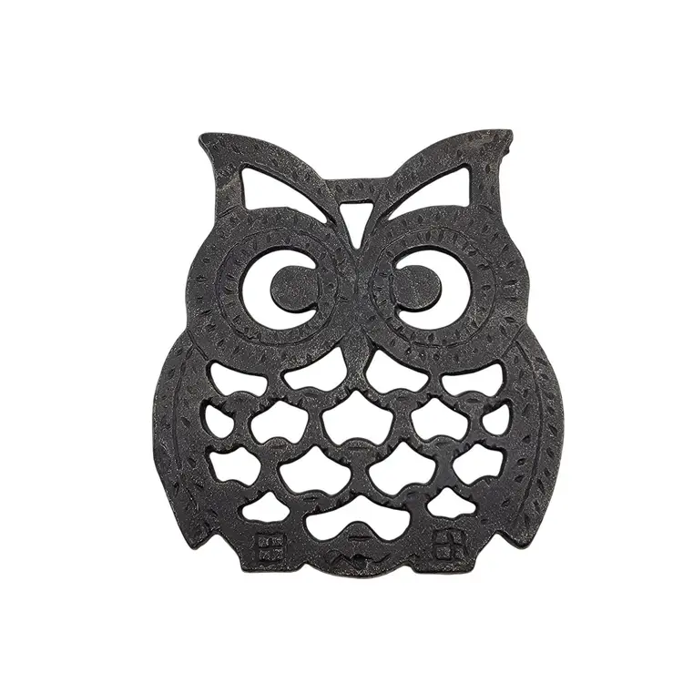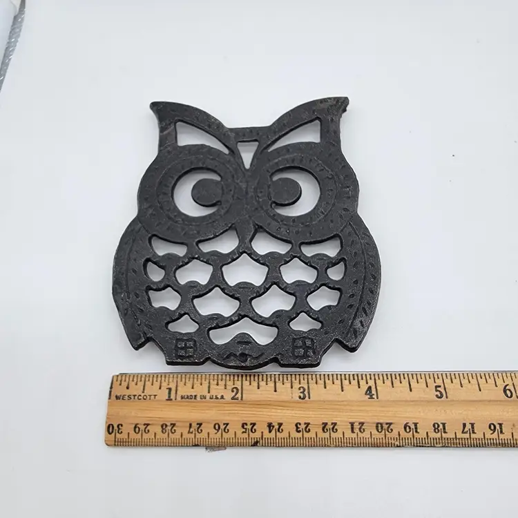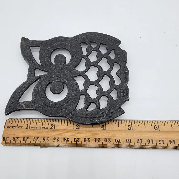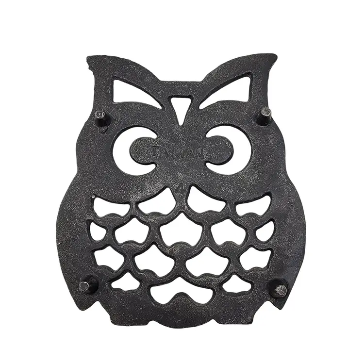 This vintage cast iron owl trivet brings a touch of rustic charm to any kitchen space. With its intricate design, it serves both as a functional kitchen aid and a decorative collectible. Ideal for those who appreciate timeless kitchenware and unique vintage finds.