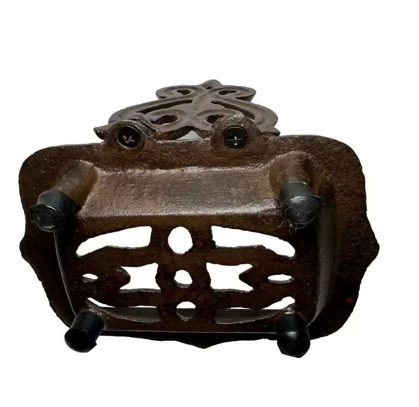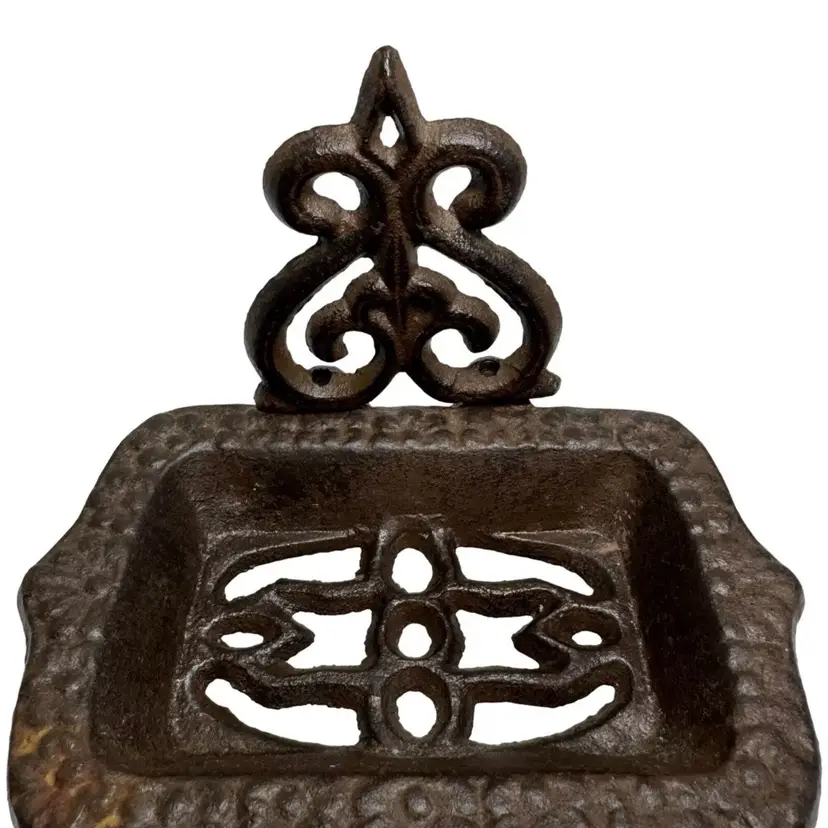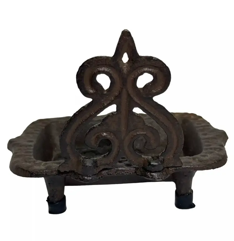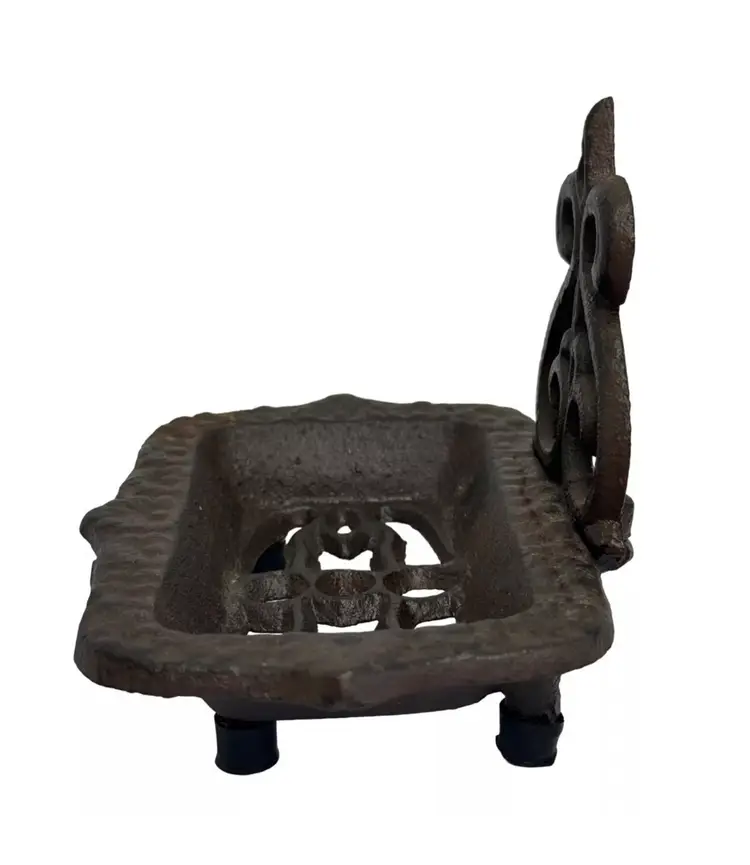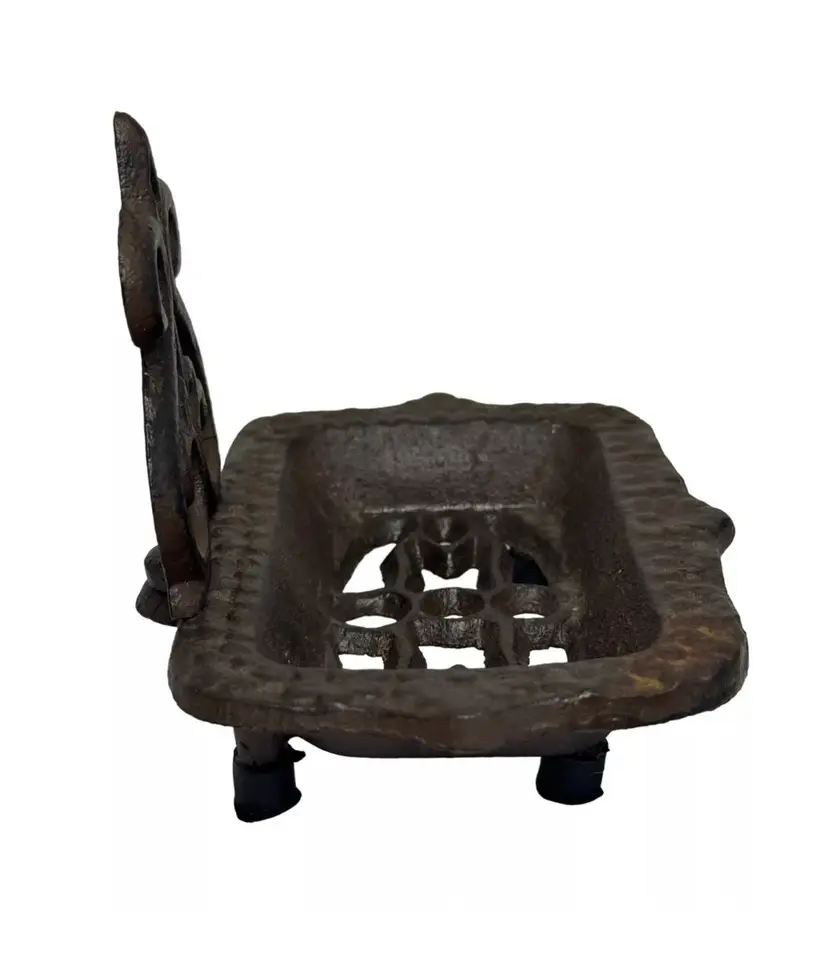 Features: • Bonus 4 swan vintage soaps, 2 pink, 1 yellow, 1 brownish orange. • Heavy cast iron with slots for water to drip off soap. • All Occasions • Pattern around rim is daisies. • Made in United States • Keep clean from built up soap.
