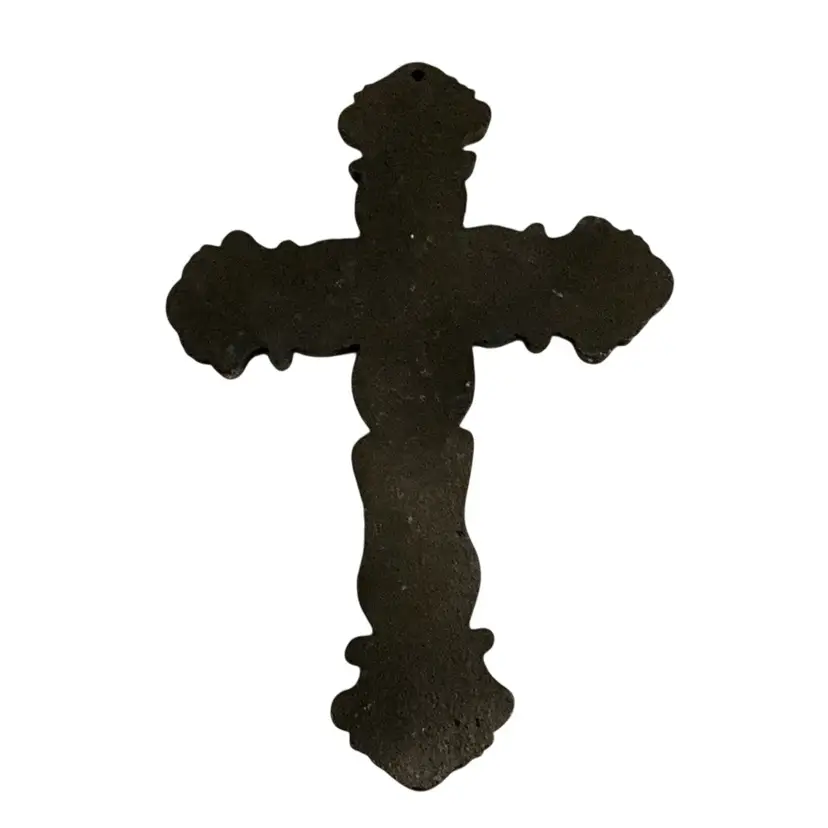 Heavy cast iron cross for wall decoration. Has a hole at the top for mounting purposes.