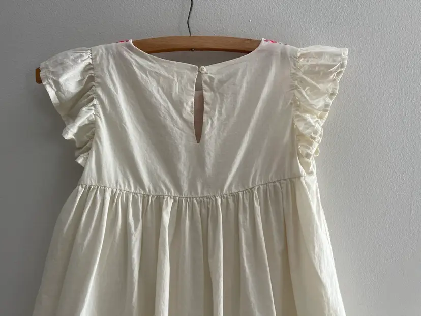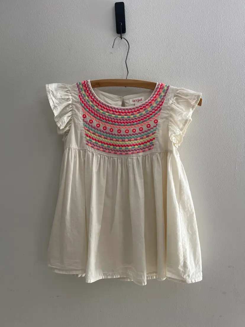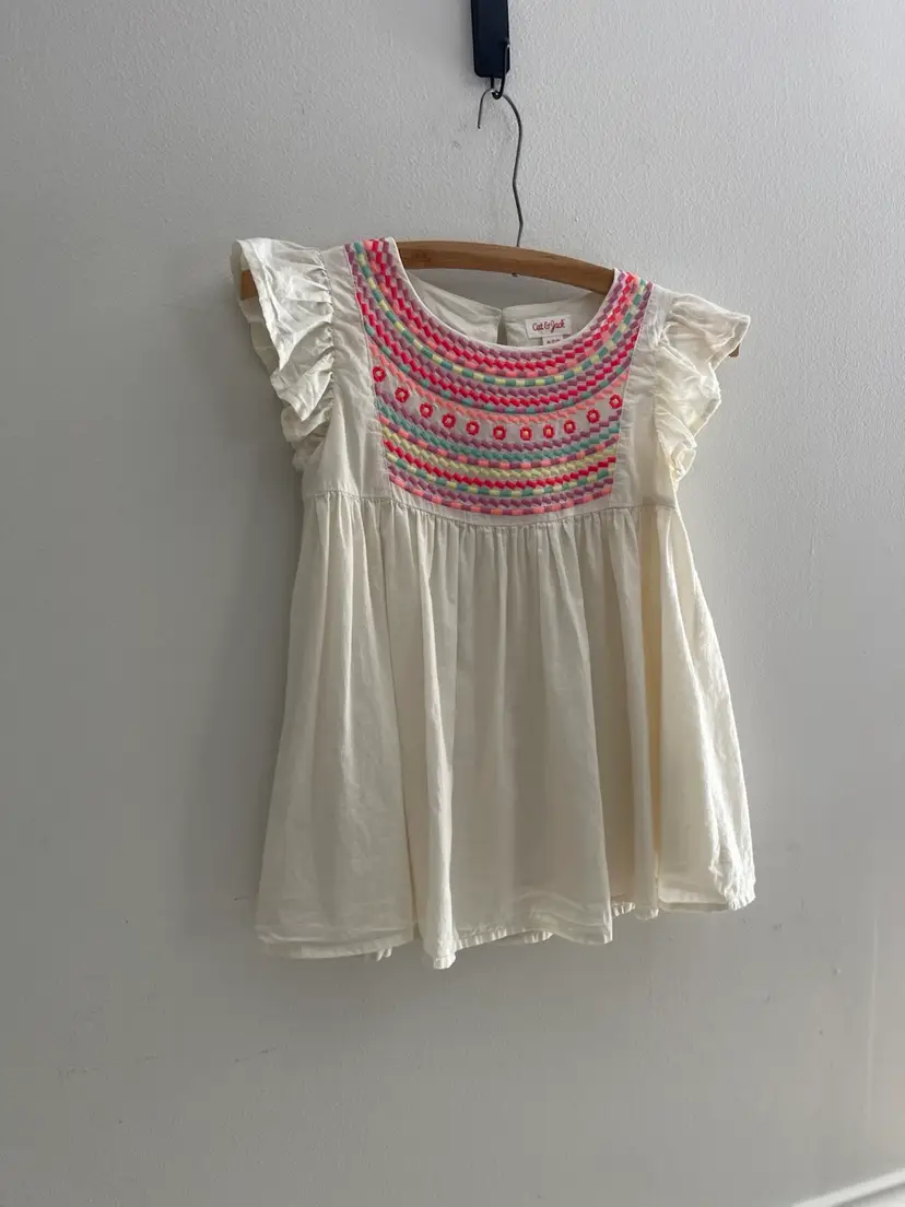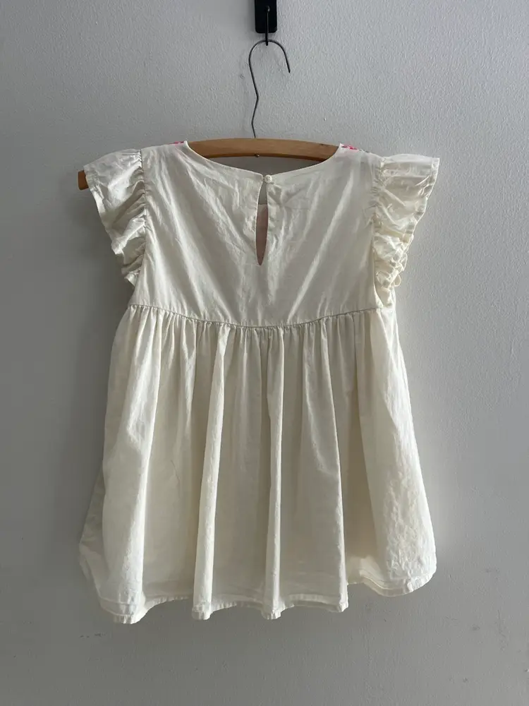 Cat & Jack Girls Multicolor Bright Embroidered Swing Smock Top 100% Cotton Size M (7/8) Double Layered for Volume and Opacity Flutter Sleeve Empire Waist Button Back Closure