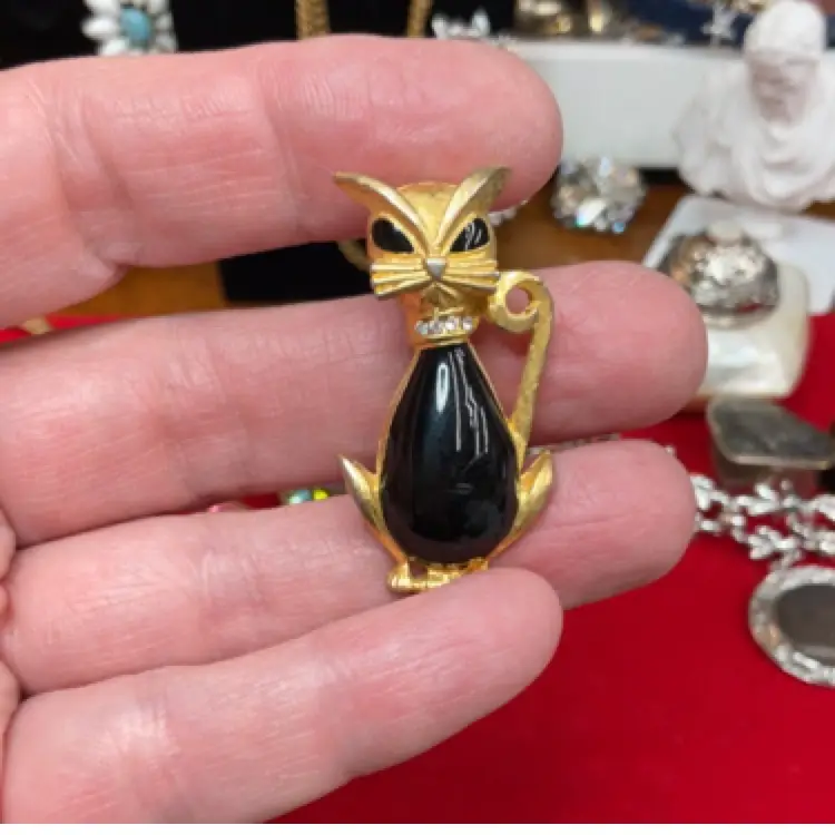 Welcome to our shop of mostly pre-owned and sometimes new jewelry treasures, trinket boxes, compacts - sometimes art and glass. Please follow us so you're in the know when we go live or add new items. Our curated beauties include a large selection of vintage pieces as well as many contemporary items. We also craft and design our own fun costume (and some fine) jewelry pieces, bookmarks, digital art and more in our small studio.