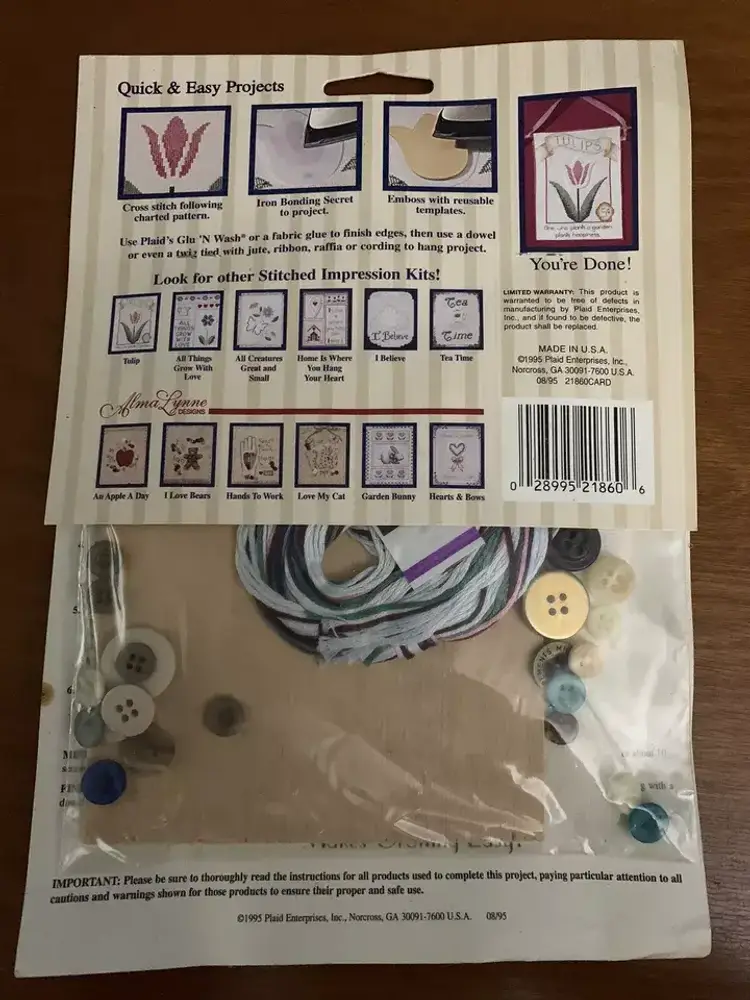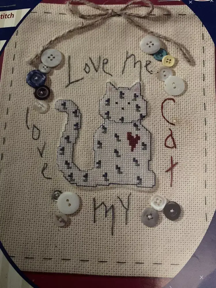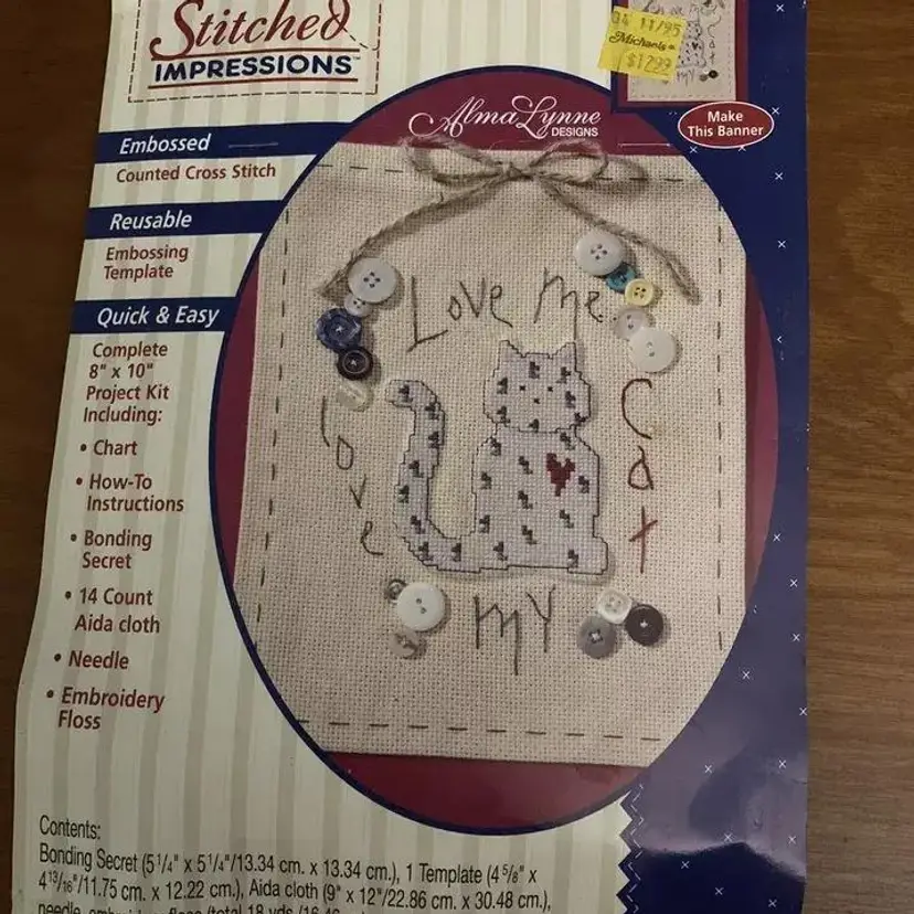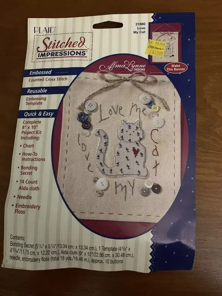 Cat Counted Cross Stitch Plaid Stitched Impression Love My 21860 vtg 1995 kit