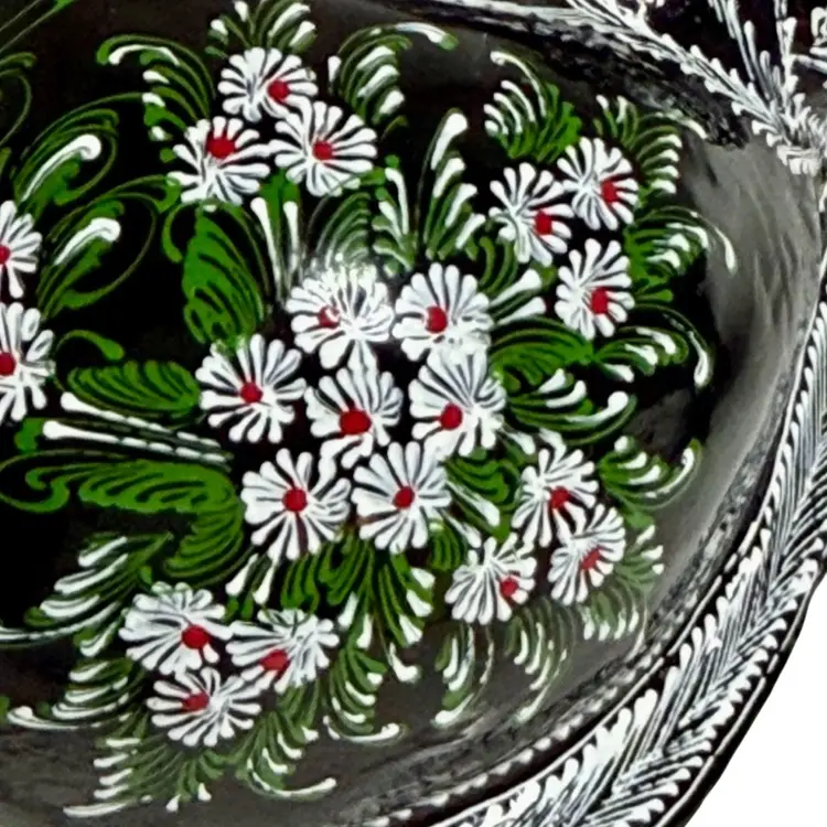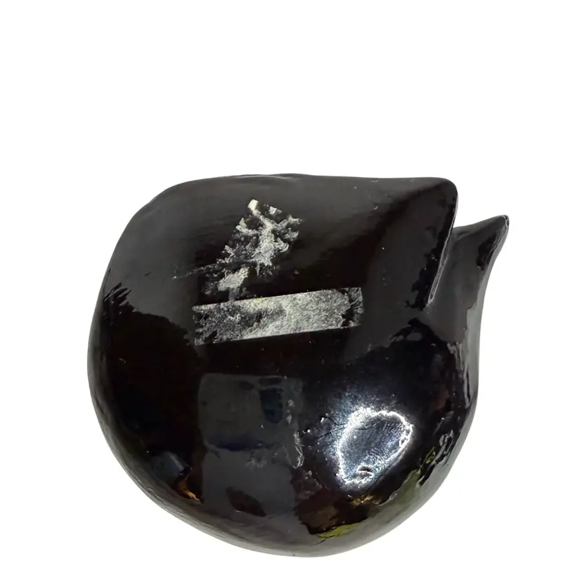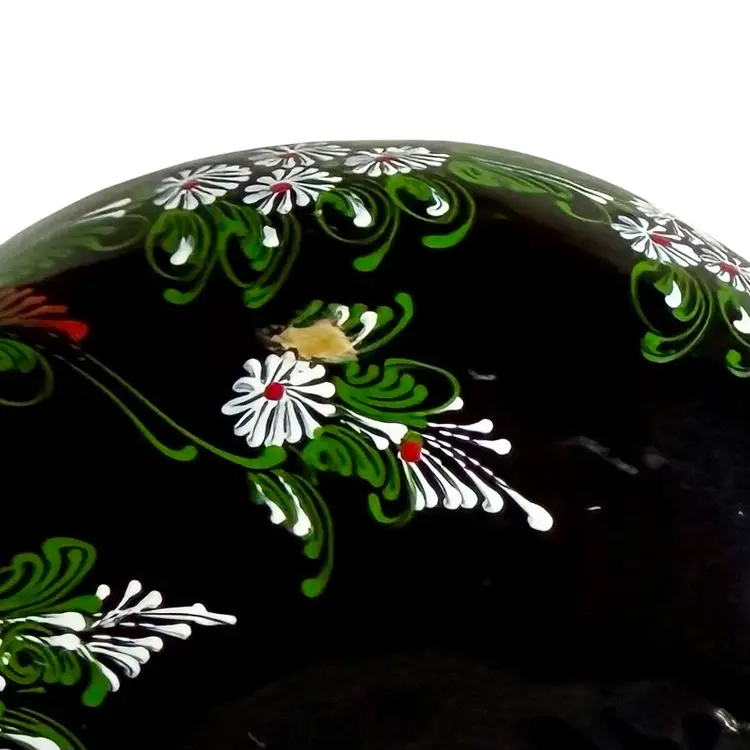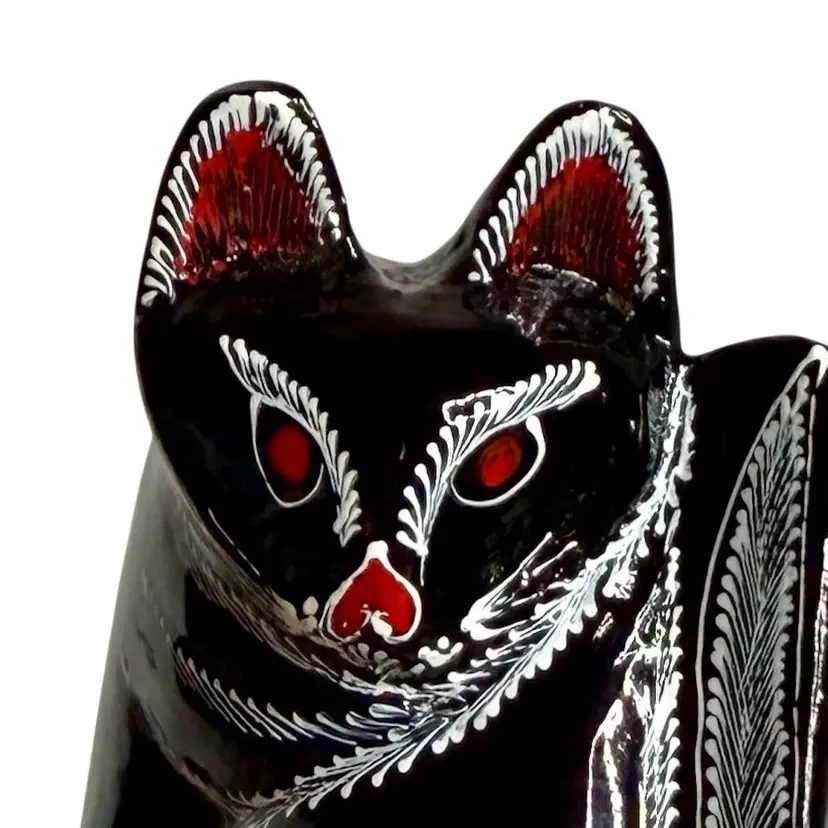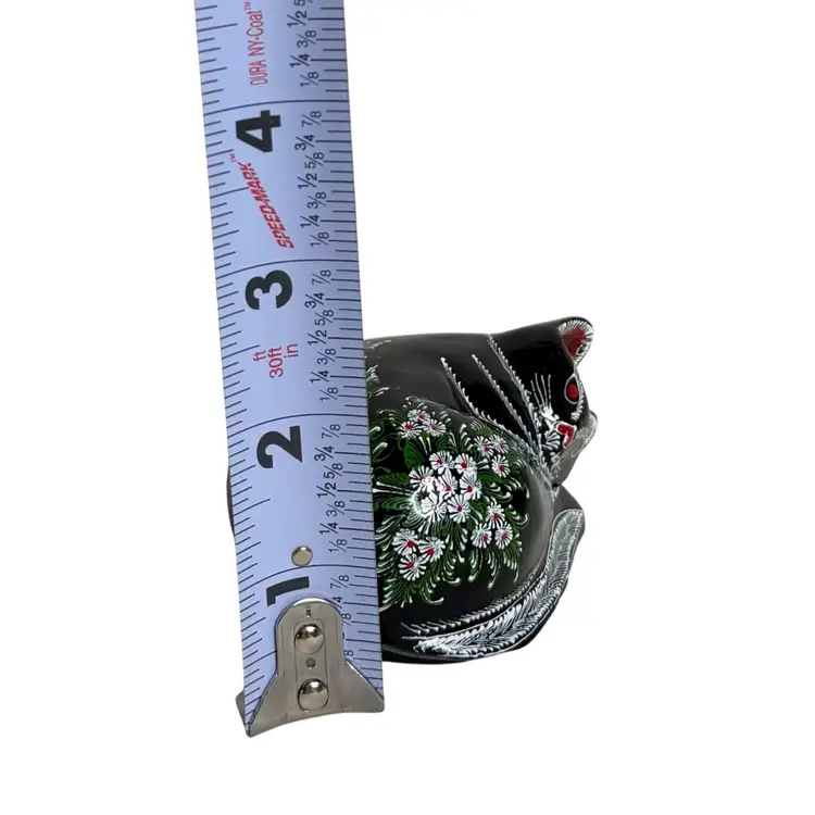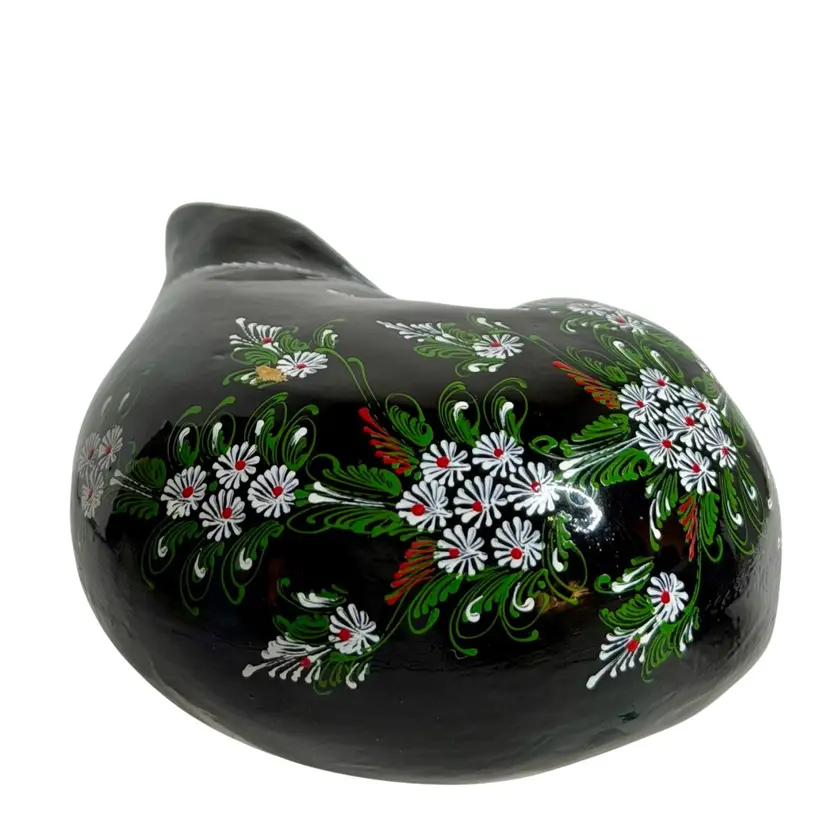 This delicate cat figurine is a stunning addition to any collection. Crafted from high-quality wood and finished with a beautiful black laquer paint and floral hand-painted design.