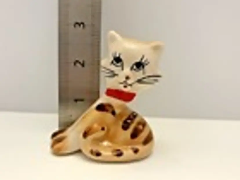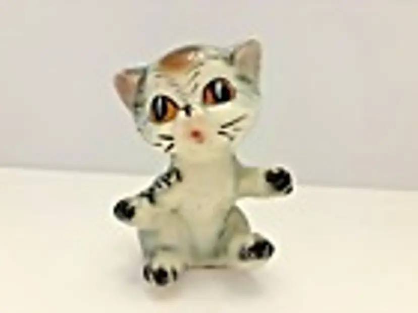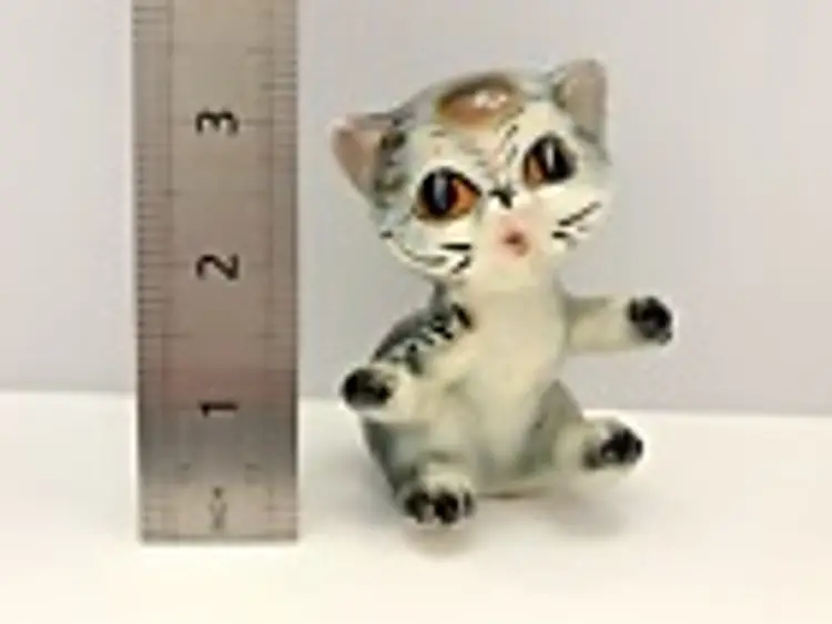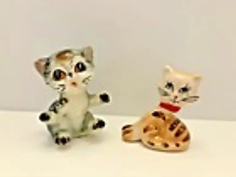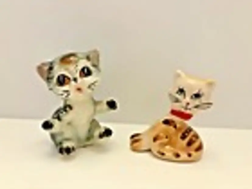 This listing is for two (2) ceramic glass collectible cats - each standing about 3 inches tall. One has a label that says Wales - Made in Japan. The other cat is not marked. Both in very nice condition and so cute!