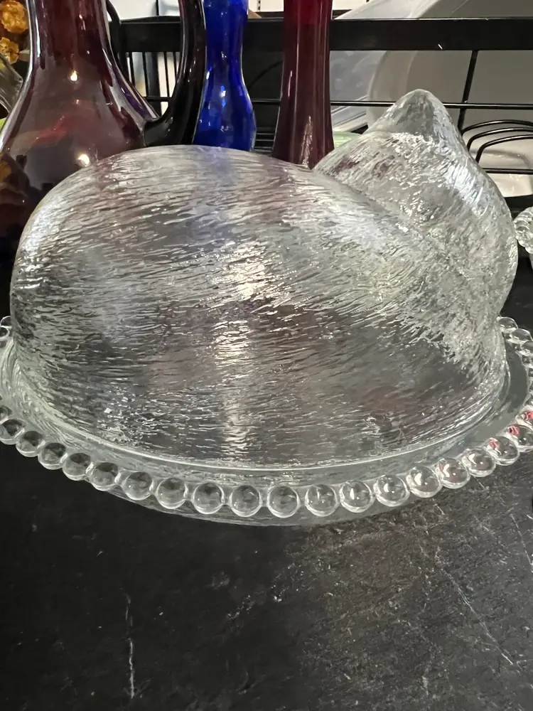 Vtg. Indiana glass cat on a nest