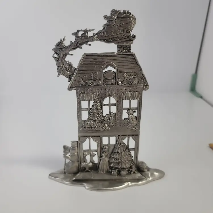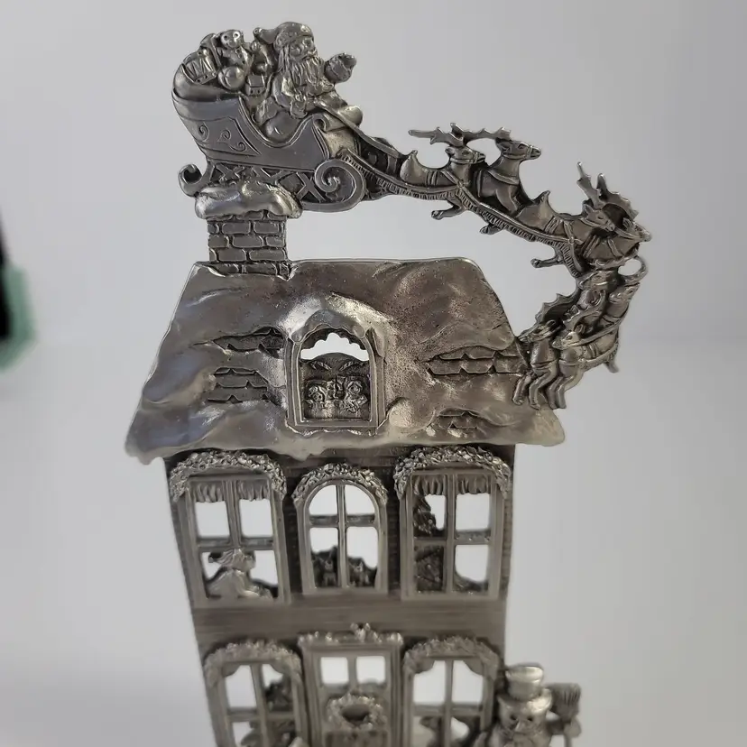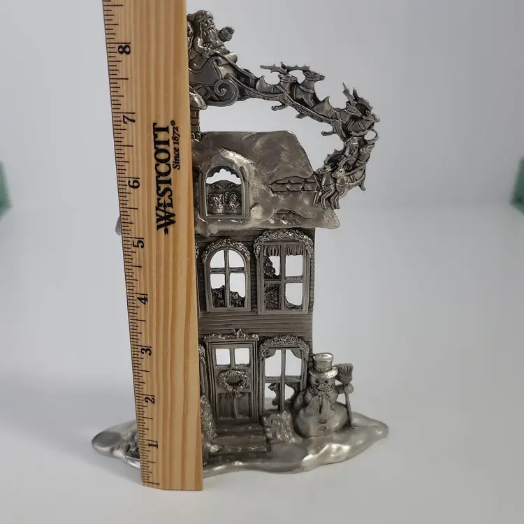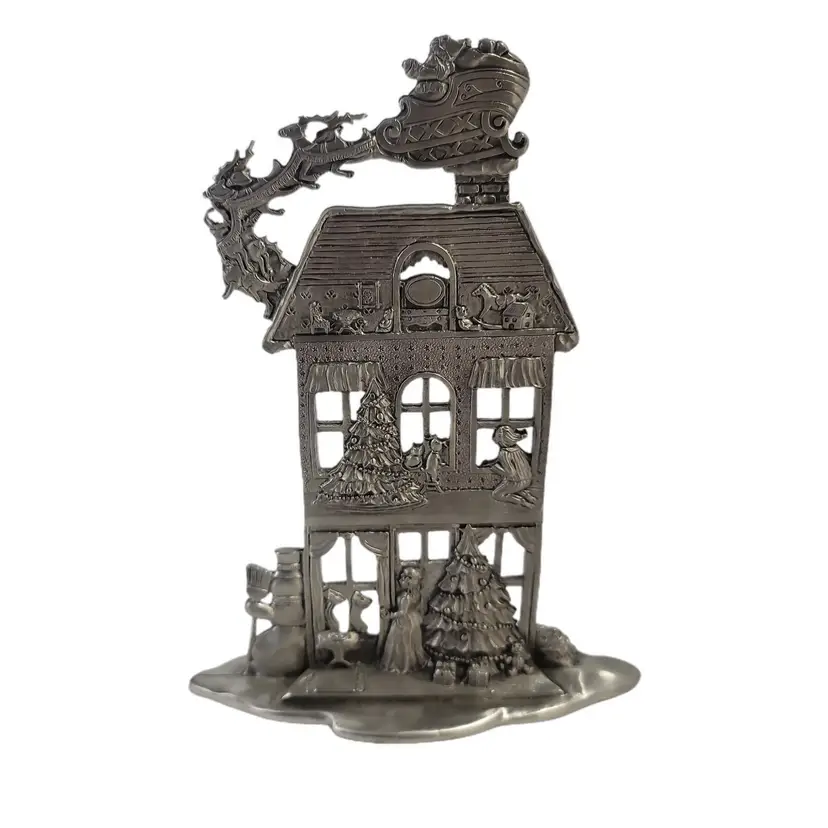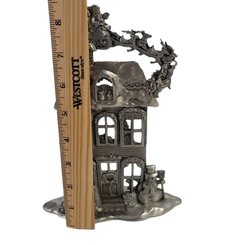 This beautiful two-sided pewter Christmas Eve edit is an ideal way to commemorate the festive season. Crafted from pewter and featuring intricate detailing, this piece is an elegant and timeless keepsake that will be cherished for years to come. Made in Canada in 1996 Etain Zinn signed on bottom 7.5 in Tall Base 6.5 in.Pre-owned does not come with orignal box or packaging.