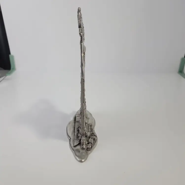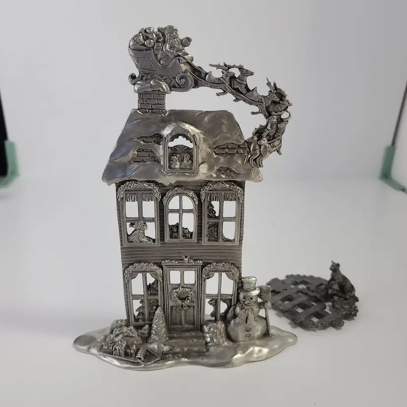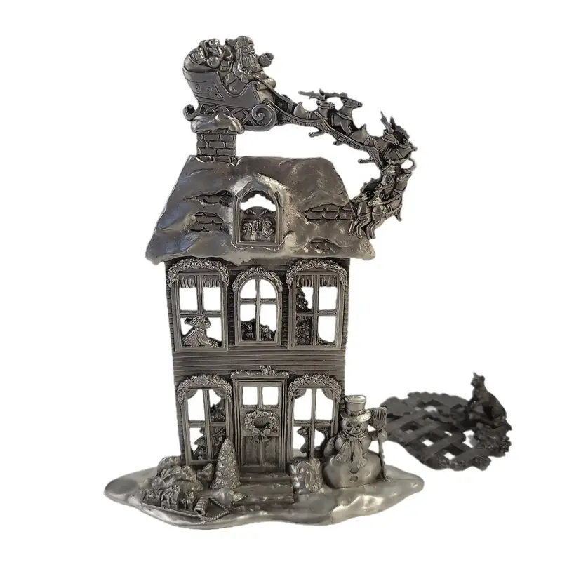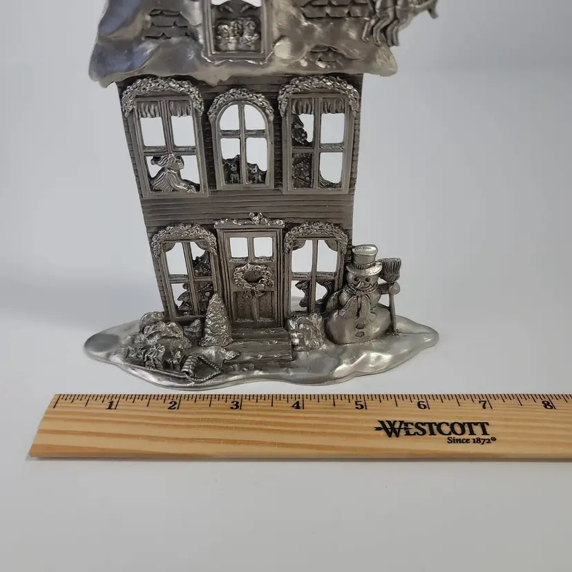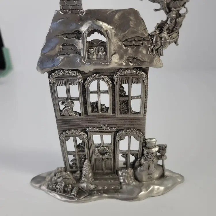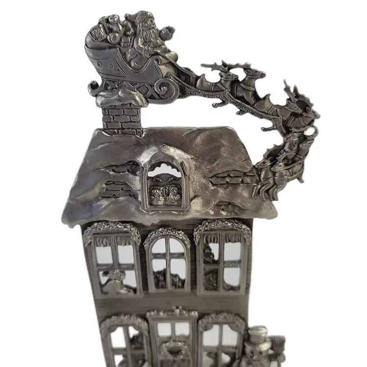 This beautiful two-sided pewter Christmas Eve edit is an ideal way to commemorate the festive season. Crafted from pewter and featuring intricate detailing, this piece is an elegant and timeless keepsake that will be cherished for years to come. Made in Canada in 1996 Etain Zinn signed on bottom 7.5 in Tall Base 6.5 in.Pre-owned does not come with orignal box or packaging.