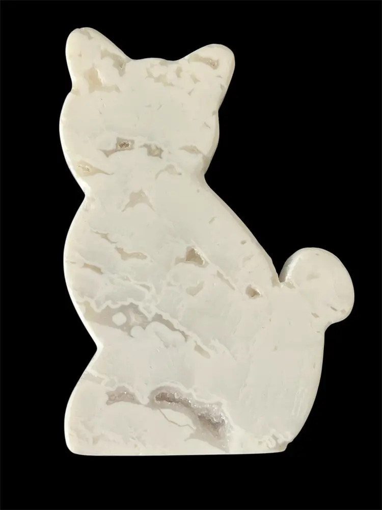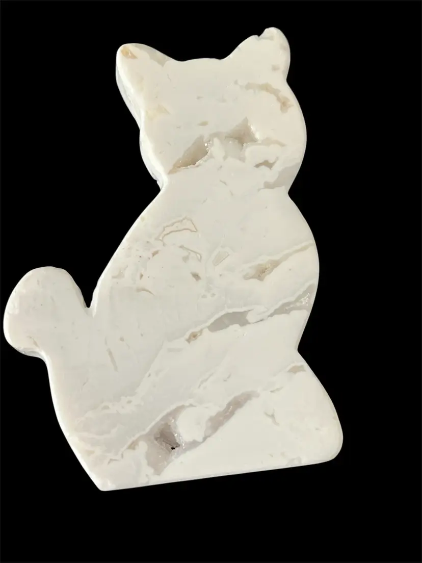 Absolutely adorable cat shaped crystal made of natural snow druzy agate. This is a nice thick piece with a smooth finish and small druzy pockets. This is a natural crystal that has not been heat treated or dyed. This sale is for the exact crystal shown in the photos.
