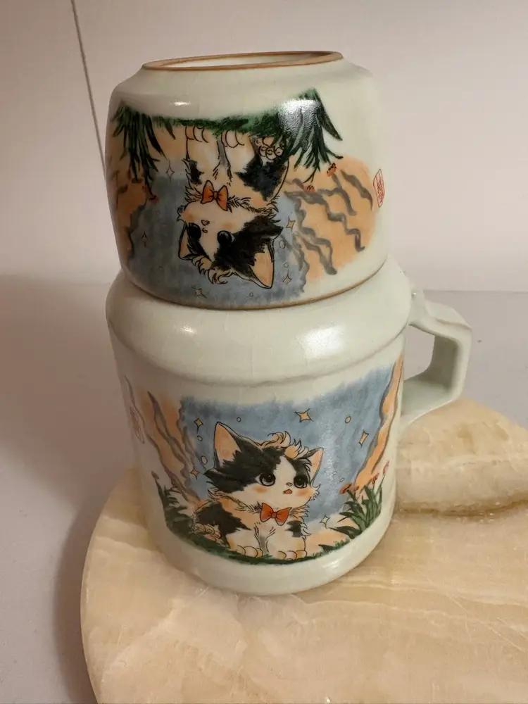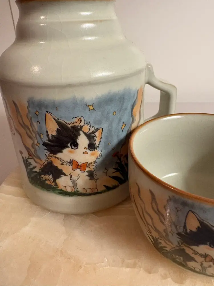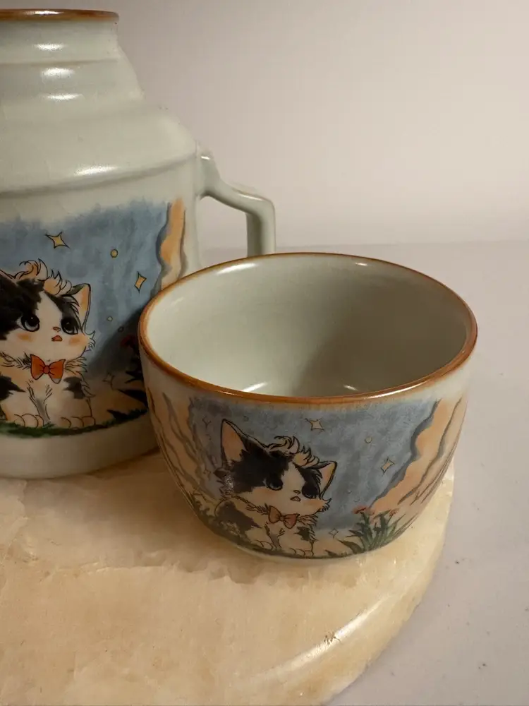 Teacup and teapot of a Cartoon Cat Porcelain Hand-Painted Gongfu