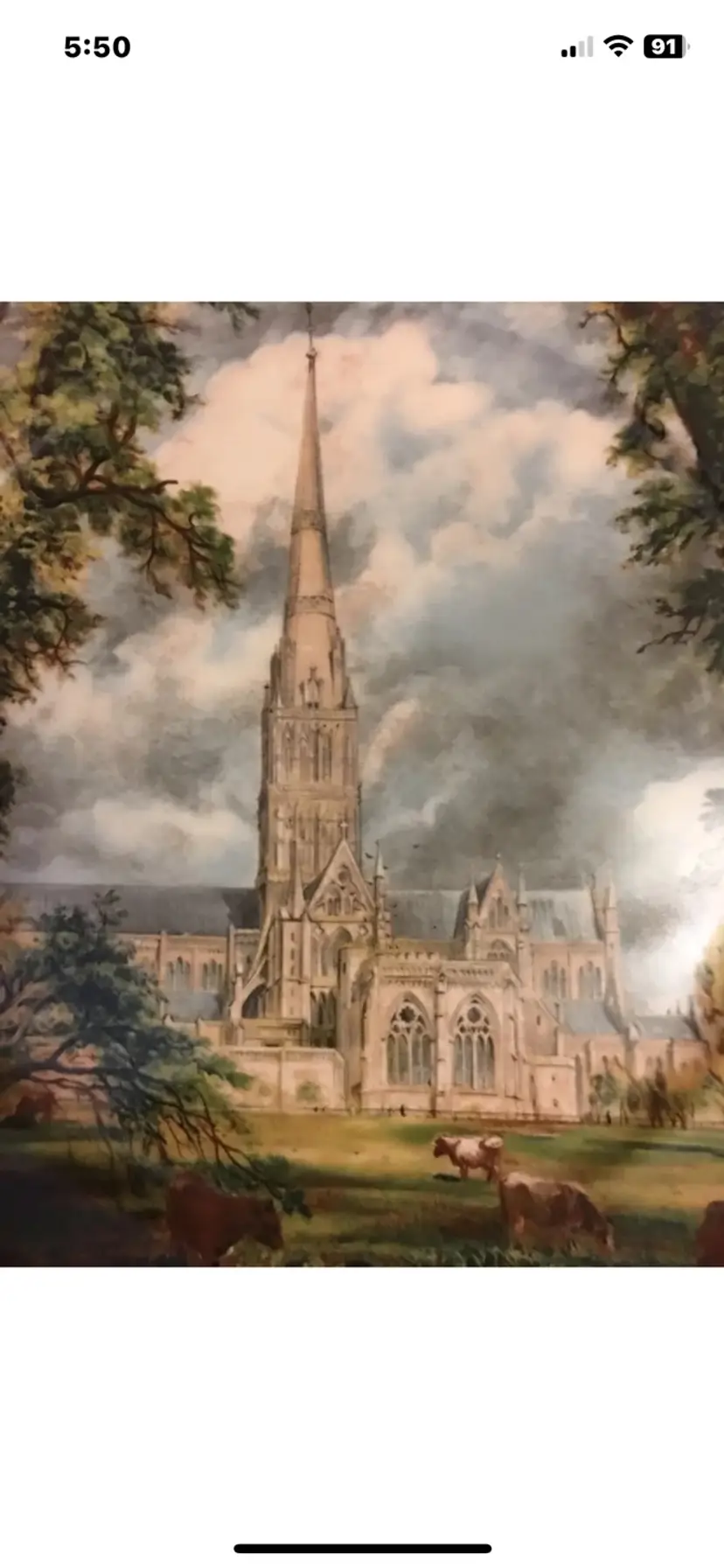 This beautiful plate from the 1980’s Wicklow Classic Art Collection, made by Arklow, features a stunning depiction of the Cathedral Church in Salisbury. Made in Ireland, the plate is crafted from fine porcelain. The Farm Collection from artist John Constable. The plate has a diameter of 10.5 inches and boasts exquisite gold edging. It is a collector's item that is perfect for all occasions. It is a decorative piece that will add charm and character to any room. The plate is in excellent condition, no chips or cracks.