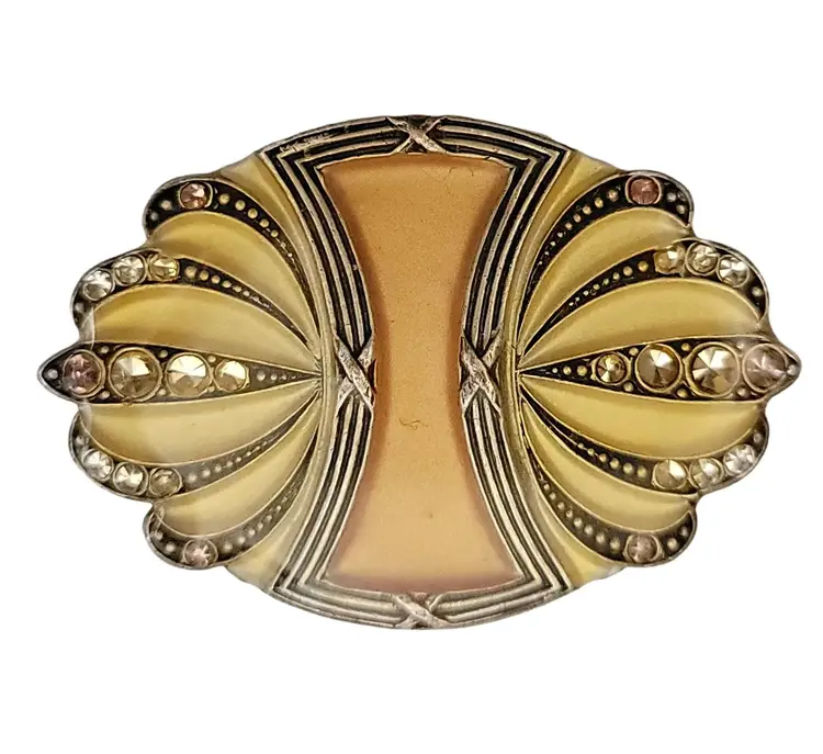 Catherine Popesco Bex Style Art Deco Yellow Enamel Clear Rhinestone Brooch