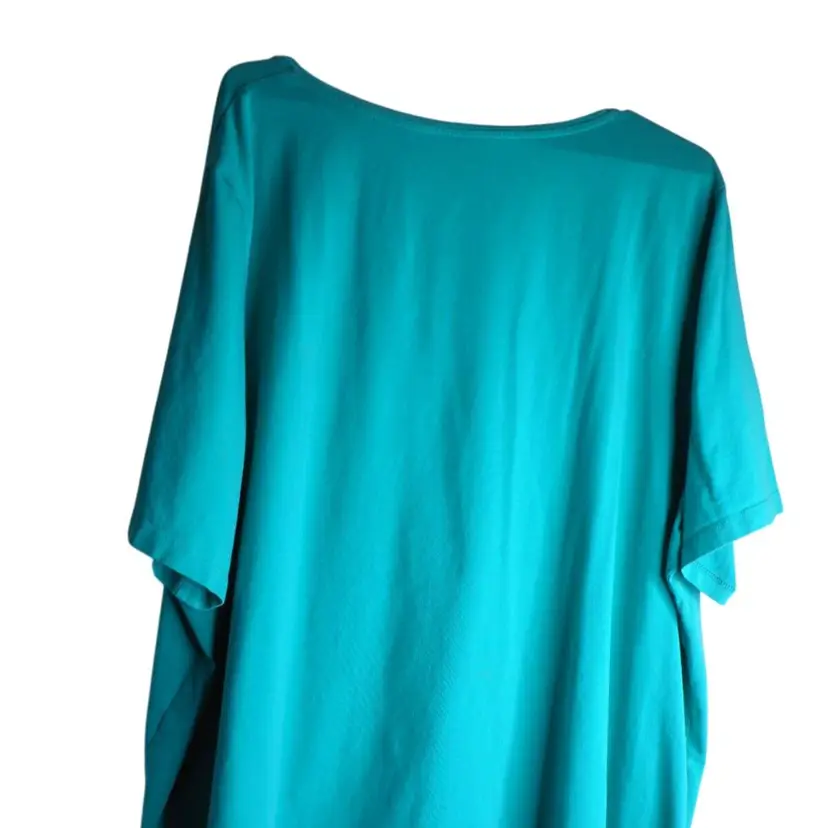 Catherines Size 3x 26/28 W Solid teal knit shirt short sleeve scoop neck