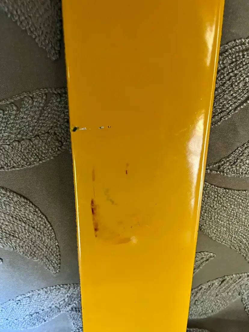 Please look at all the photos prior to deciding to make a purchase. This is a worn and gently used item and the back side does show a few marks. Buyer, however, is strongly encouraged to review the photos and decide for themselves its condition.