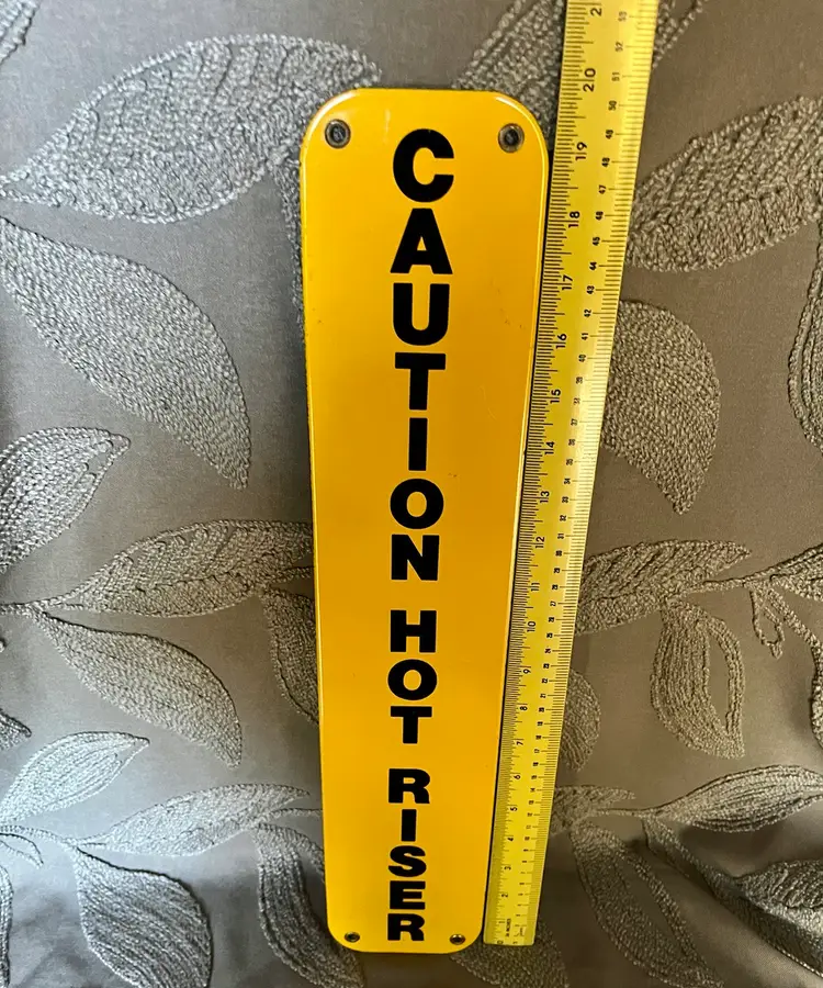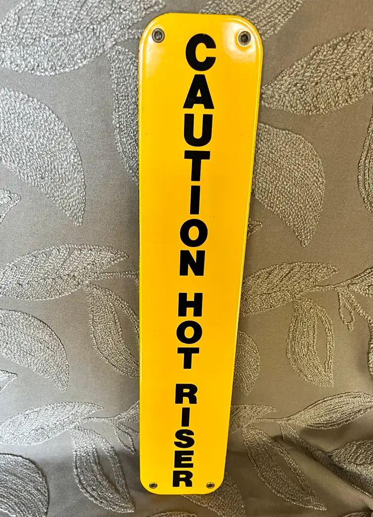Caution Hot Riser Yellow Black Enamel Vertical Metal Sign Legitimate Use or Adult Humor