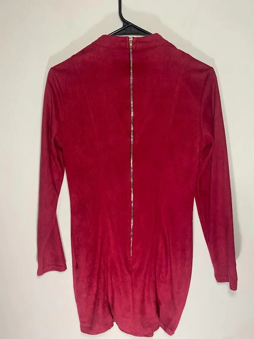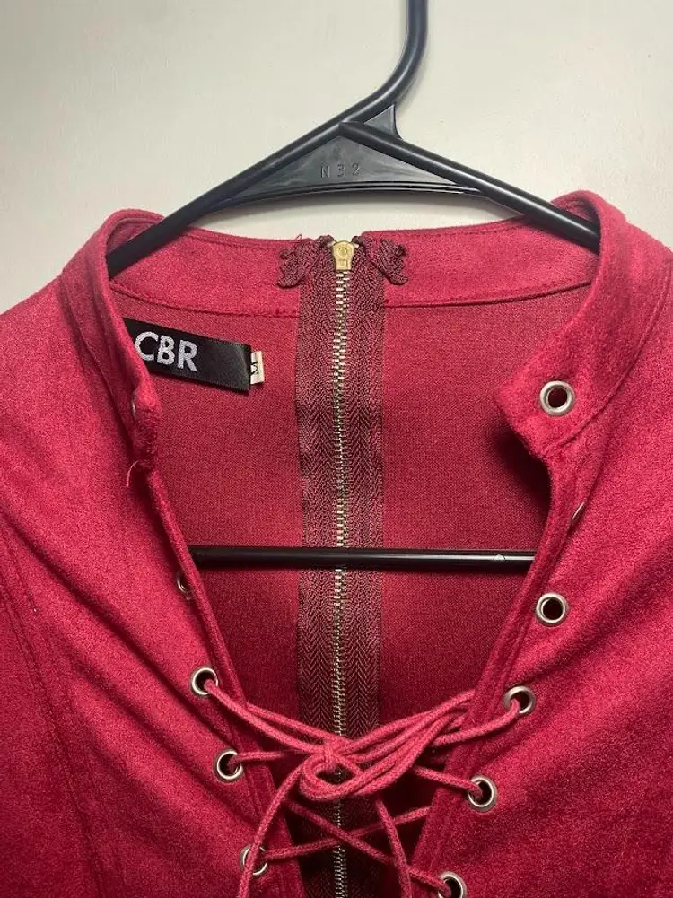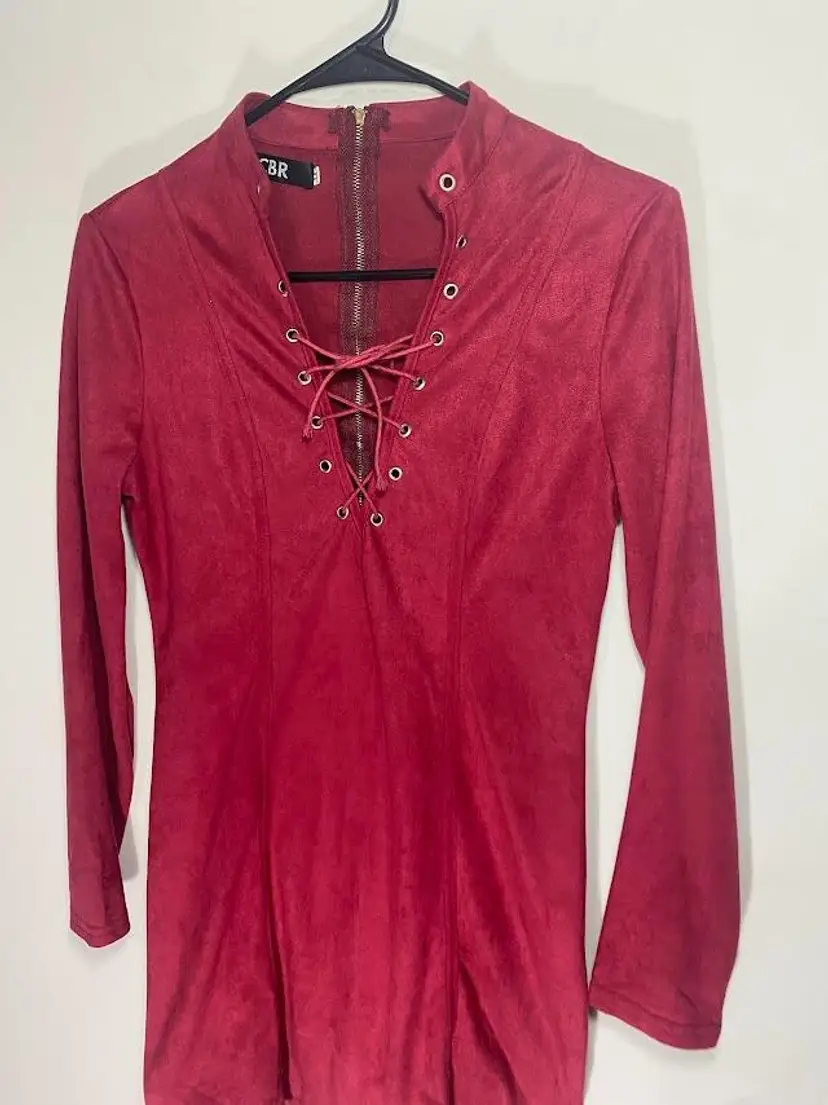 Women's CBR red faux suede long sleeve lace-up dress. Size M. Great condition. Pit to pit: 16". Total length: 31.5". Sleeve length: 18".
