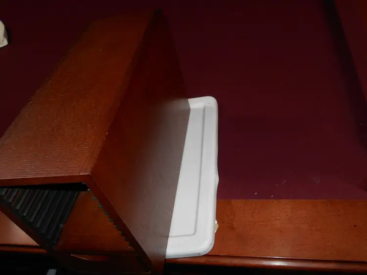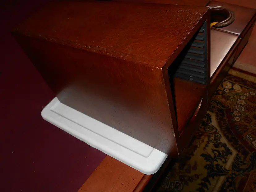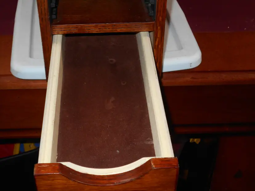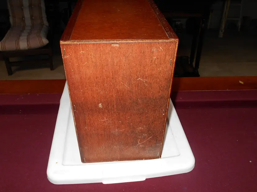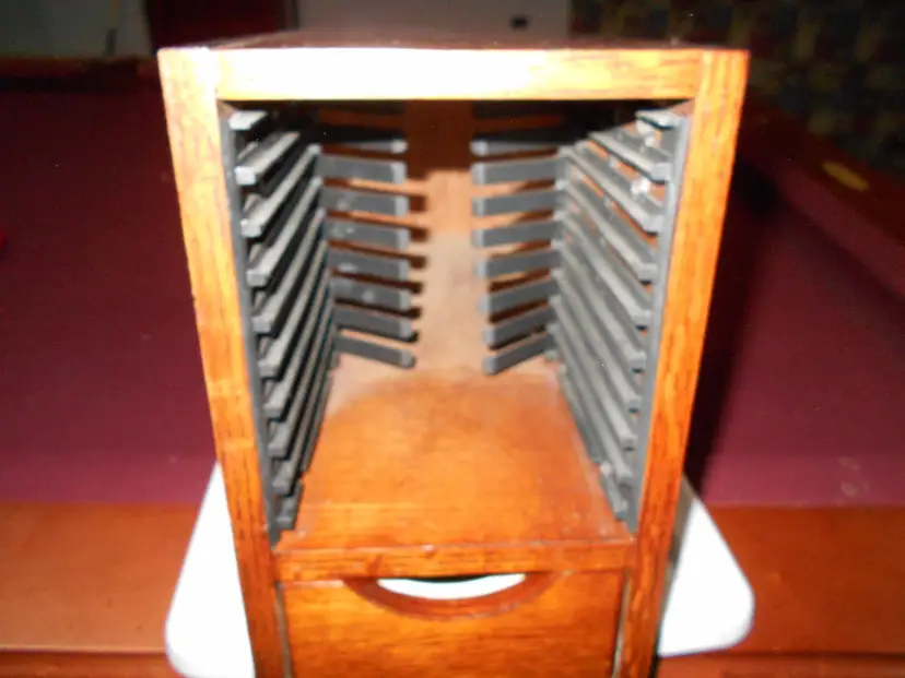9 TIER CD tower with drawer. 16"x 6"x 10", nice stained wood finish.