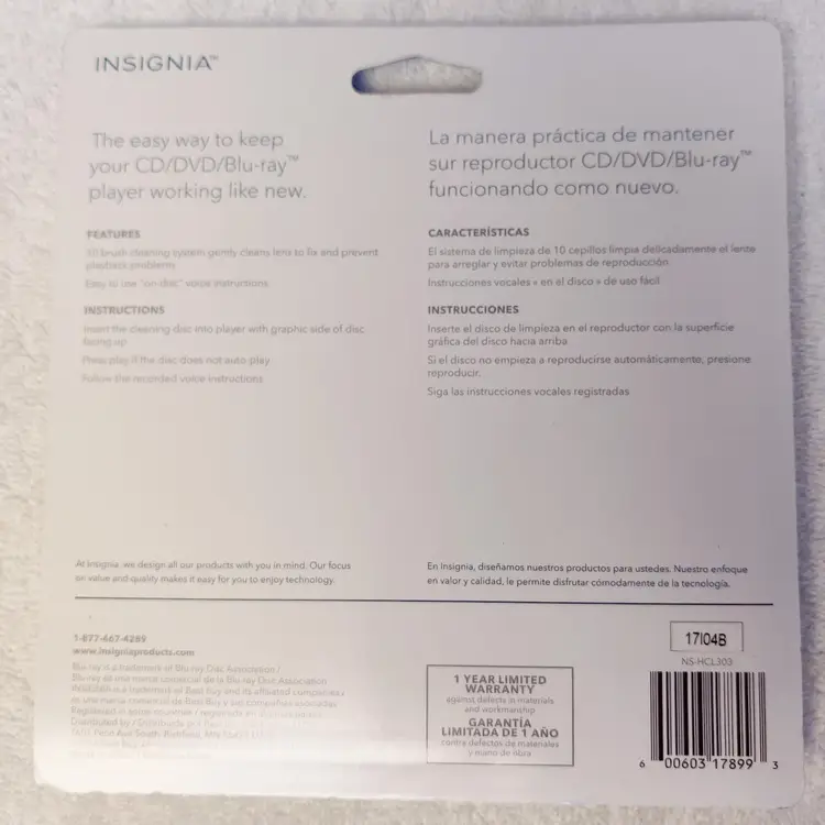 Insignia CD, DVD and Blu-ray Disk Cleaner NEW